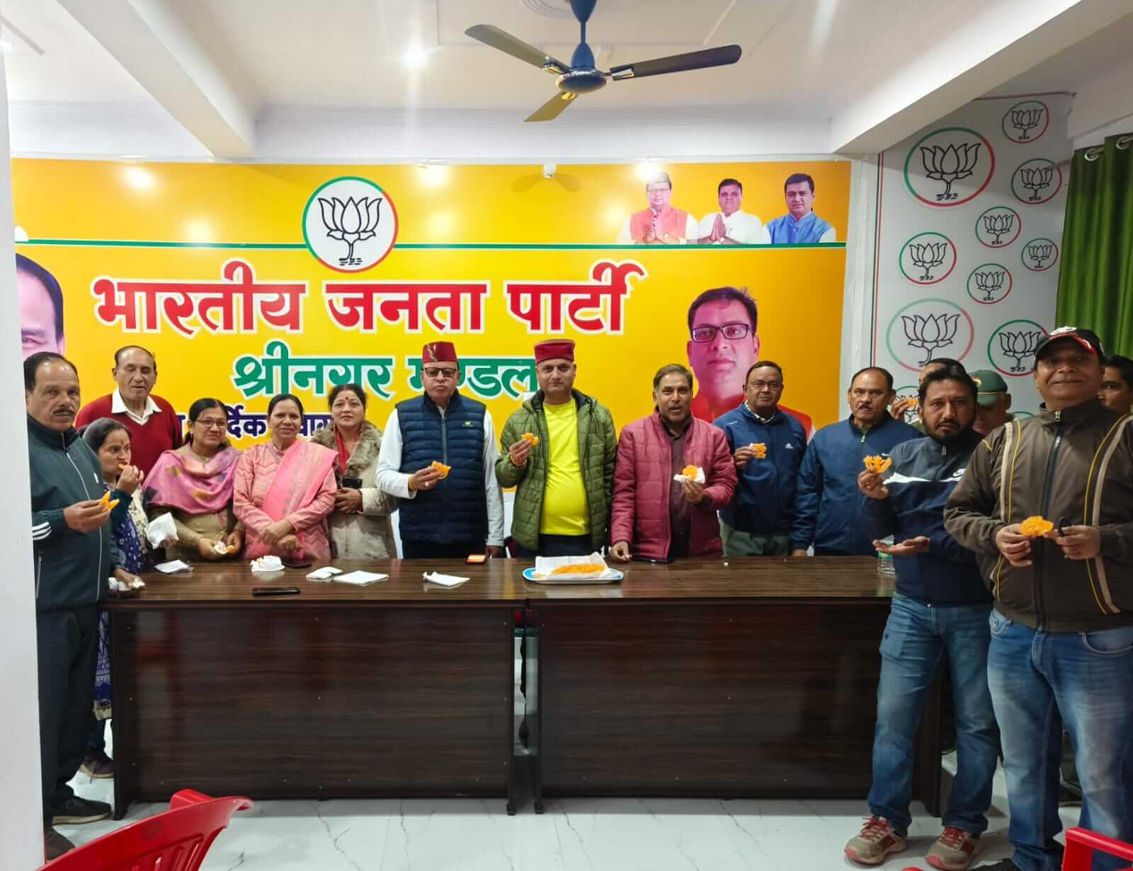 बिहार चुनाव में एनडीए की ऐतिहासिक जीत पर श्रीनगर मंडल में जश्न कार्यकर्ताओं ने विजय को जनता के विश्वास का परिणाम बताया