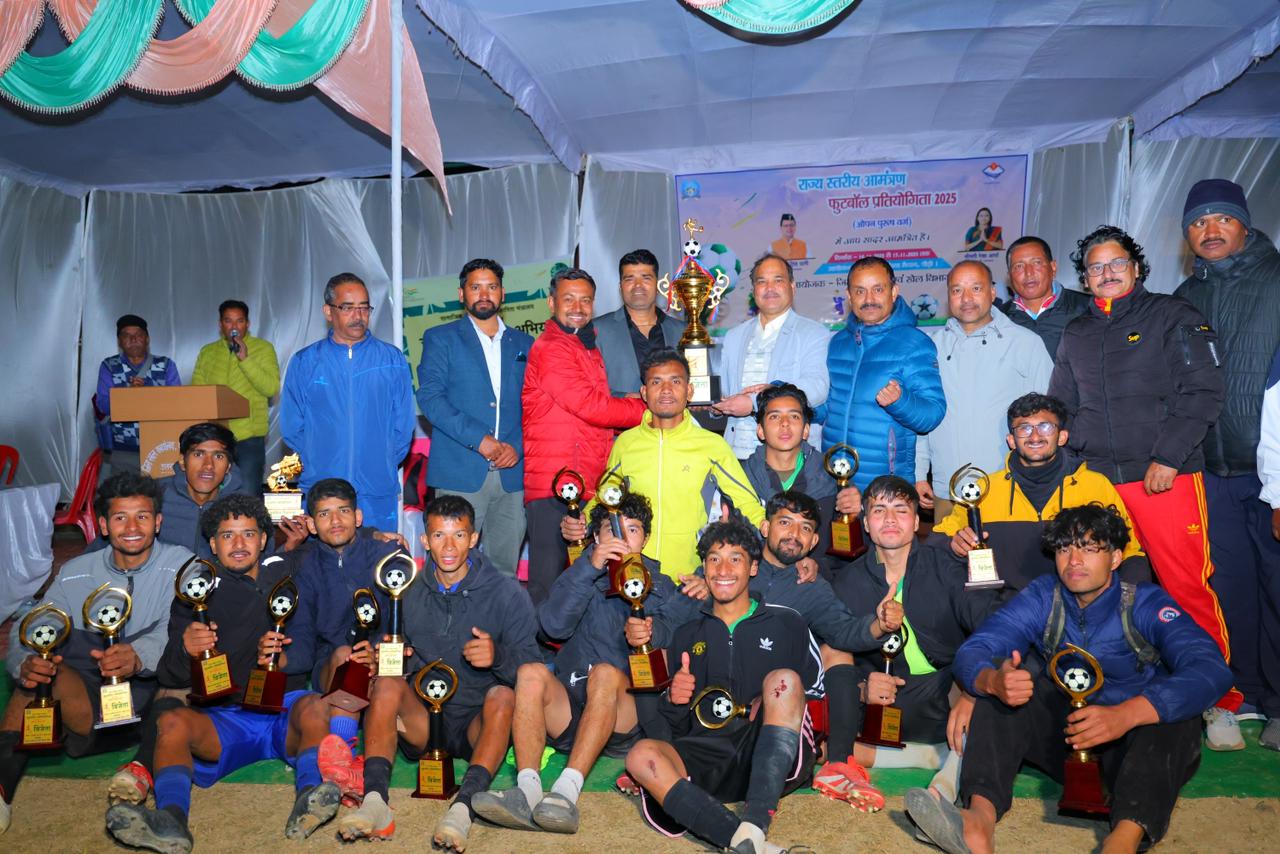 पौड़ी/श्रीनगर गढ़वाल।जिला प्रशासन एवं खेल विभाग के तत्वावधान में कंडोलिया खेल मैदान में आयोजित चार दिवसीय राज्य स्तरीय आमंत्रण फुटबॉल प्रतियोगिता का सोमवार को भव्य समापन हुआ। समापन दिवस पर दो सेमीफाइनल मुकाबलों के साथ ही जिला प्रशासन इलेवन और प्रेस इलेवन के बीच खेले गए मैत्री मैच ने भी दर्शकों का खूब मनोेरंजन किया। फाइनल में हरिद्वार और चंपावत की टीमें आमने-सामने हुई,जिसमें हरिद्वार ने शानदार खेल दिखाते हुए 1-0 से मुकाबला अपने नाम किया। अंतिम क्षणों तक चले रोमांचक मुकाबले में हरिद्वार ने बढ़त बनाए रखकर खिताब पर कब्जा किया। प्रतियोगिता के दौरान खिलाड़ियों और खेलप्रेमियों में खासा उत्साह देखने को मिला। जिला प्रशासन द्वारा खेल गतिविधियों को प्रोत्साहित करने की लगातार पहल का परिणाम है कि इस बार बड़ी संख्या में टीमें और दर्शक प्रतियोगिता का हिस्सा बने। कंडोलिया मैदान में चार दिनों से चल रही इस प्रतियोगिता ने न केवल स्थानीय खिलाड़ियों को उत्कृष्ट मंच प्रदान किया बल्कि जिले में खेल संस्कृति को नई ऊर्जा भी दी। समापन अवसर पर मुख्य विकास अधिकारी गिरीश गुणवंत ने खिलाड़ियों से परिचय प्राप्त कर उन्हें शुभकामनाएं दीं। उन्होंने कहा कि ऐसे आयोजन युवाओं में खेल भावना,अनुशासन और टीमवर्क को प्रोत्साहित करते हैं। उन्होंने जिला प्रशासन और खेल विभाग की सराहना करते हुए कहा कि बेहतर प्रबंधन और तैयारी के कारण प्रतियोगिता सफलतापूर्वक संपन्न हुई। फुटबॉल के राष्ट्रीय खिलाड़ी मनीष मैठाणी ने जिलाधिकारी स्वाति एस.भदौरिया का विशेष आभार व्यक्त किया। उन्होंने कहा कि जिला प्रशासन की सक्रिय भूमिका और समर्थन से पौड़ी में खेलों के लिए बेहतर माहौल तैयार हो रहा है,जिससे स्थानीय खिलाड़ियों को आगे बढ़ने का अवसर मिल रहा है। उन्होंने कहा कि ऐसी प्रतियोगिताएं खिलाड़ियों के आत्मविश्वास और भविष्य दोनों के लिए महत्वपूर्ण होती हैं। जिला क्रीड़ा अधिकारी जयबीर सिंह रावत ने कहा कि जिलाधिकारी की पहल से पौड़ी में फुटबॉल प्रतियोगिता का आयोजन किया गया। इस प्रतियोगिता में सभी जनपदों द्वारा प्रतिभाग किया गया।उन्होंने इस प्रतियोगिता का सफल संपादन हेतु जिलाधिकारी का धन्यवाद किया। साथ ही उन्होंने इस प्रतियोगिता में आवश्यक सहयोग देने वाले विभागों में स्वास्थ्य विभाग,जल संस्थान,शिक्षा विभाग,सूचना विभाग,समाज कल्याण,विद्युत विभाग सहित अन्य का भी धन्यवाद किया। उन्होंने कहा कि आगे ऐसे प्रतियोगिताओं को ओर भव्य रूप में आयोजित किया जाएगा। सेमीफाइनल मुकाबले में पहला मैच बागेश्वर और चंपावत के बीच खेला गया,जिसमें चंपावत ने 1–0 से विजय प्राप्त की। दूसरा सेमीफाइनल देहरादून और हरिद्वार के बीच खेला,जिसक