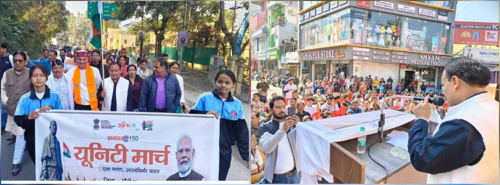 श्रीनगर गढ़वाल।देश के लौहपुरुष सरदार वल्लभभाई पटेल की 150वीं जयंती के उपलक्ष्य में पूरे देश में चल रहे सरदार 150 एकता मार्च के तहत श्रीनगर में भव्य एकता मार्च निकाला गया। मार्च में बड़ी संख्या में गढ़वाल विश्वविद्यालय के छात्र-छात्राएँ,विभिन्न मंडलों के प्रतिनिधि और नागरिक शामिल हुए। मार्च एनआईटी से प्रारंभ होकर मुख्य बाजार होते हुए गोला बाजार तक राष्ट्र एकता के गीतों के साथ आगे बढ़ा। कैबिनेट मंत्री धन सिंह रावत भी मार्च में शामिल रहे। उन्होंने कहा कि सरदार पटेल ने दूरदर्शिता और दृढ़ संकल्प से भारत को एक अखंड राष्ट्र के रूप में स्थापित किया। यह एकता मार्च उनके आदर्शों को नमन है और युवा पीढ़ी को राष्ट्र निर्माण के लिए प्रेरित करता है। कार्यक्रम का संचालन नोडल अधिकारी राकेश नेगी और श्रीनगर मंडल अध्यक्ष विनय घिल्डियाल के नेतृत्व में हुआ।मार्च में जिला महामंत्री गणेश भट्ट,ब्लॉक प्रमुख अनिल भंडारी,दिनेश पटवाल,पंकज सती,रेनू सुंदरियल,आशा उपाध्याय सहित बड़ी संख्या में छात्र और कार्यकर्ता मौजूद रहे। सभी प्रतिभागियों ने एक स्वर में देश की एकता,अखंडता और राष्ट्र भाव को बनाए रखने का संकल्प लिया।