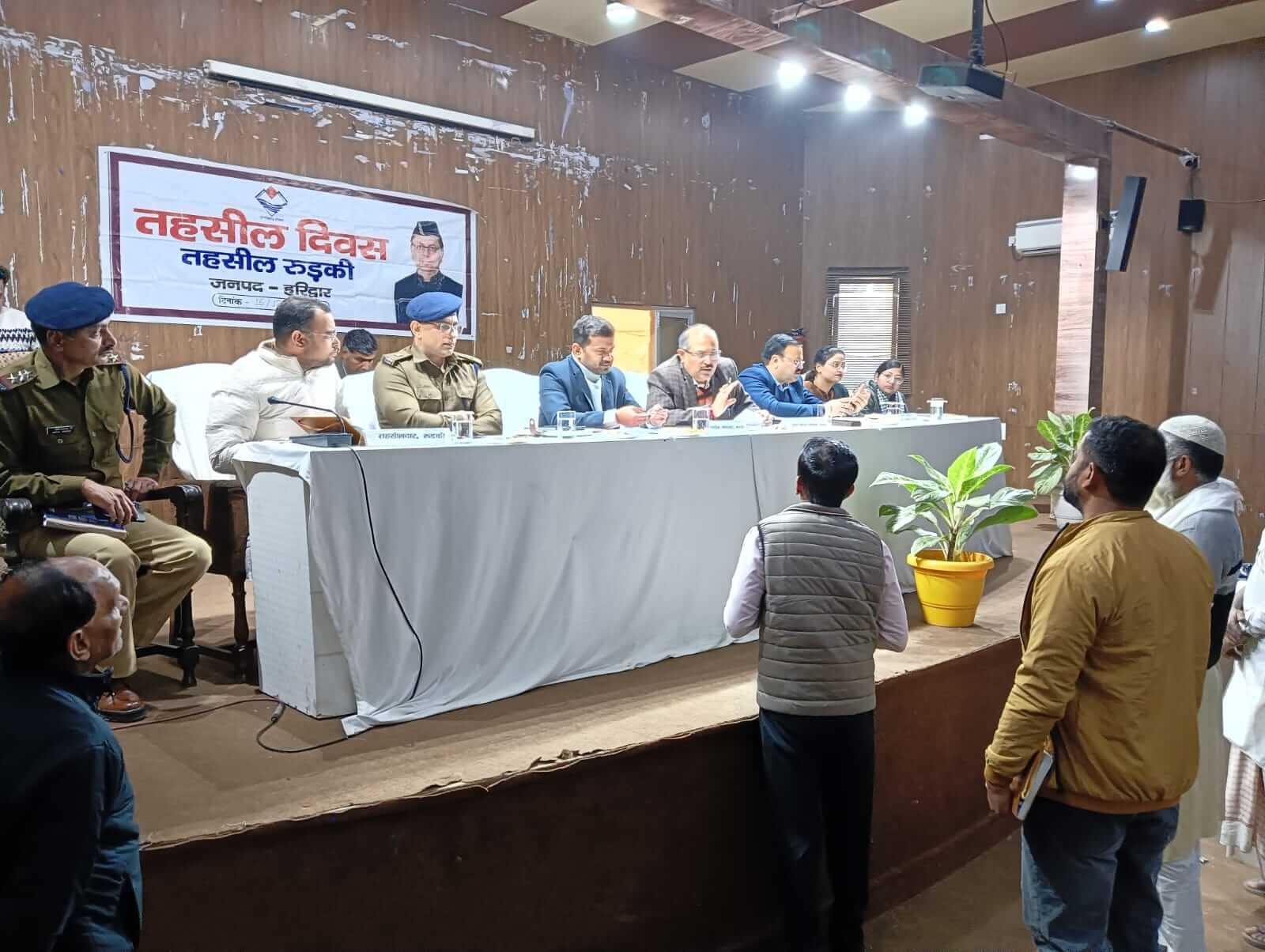 हरिद्वार/श्रीनगर गढ़वाल। हरिद्वार जनपदवासियों की समस्याओं का त्वरित निराकरण करने के उद्वेश्य से मुख्यमंत्री के निर्देशों के अनुपालन में एवं जिलाधिकारी मयूर दीक्षित के निर्देश में तहसील रूड़की में मुख्य विकास अधिकारी ललितनारायण मिश्रा के अध्यक्षता में तहसील दिवस का आयोजन किया गया। तहसील दिवस के अवसर पर क्षेत्रिय जनता के द्वारा विभिन्न विभागों से सम्बन्धित 45 शिकायतें दर्ज कराई गयी जिसमें अतिक्रमण,चकबंदी,पैमाइश,जलनिकासी आदि से सम्बन्धित थी। जिसमें से 28 समस्याओं का मौके पर निस्तारण किया गया शेष समस्याओं को त्वरित कार्यवाही हेतु सम्बन्धित विभागों को प्रेषित किया गया। तहसील दिवस में शाहिर मलिक ने नाली निर्माण में आवेदन पत्र दिया है संदीप कुमार द्वारा क्षेत्र के तालाब के निर्माण में आवेदन पत्र दिया गया है,अनूप कुमार द्वारा सड़क ओर नाली के निमार्ण के सम्बन्धि में आवेदन पत्र दिया गया है। कमल कुमार द्वारा खसरा नं0 168 से अतिक्रमण हटाने की मांग की गयी,जितेन्द्र कुमार द्वारा खसरा नं0 707 को कब्जा मुक्त कराने की मांग की गयी। शिवपुरम जनकल्याण समिति द्वारा मंदिर के पास मांस की दुकान हटाने की मांग की गयी। तहसील दिवस की समीक्षा के दौरान मुख्य विकास अधिकारी ने पाया की तीन अधिकारी अनुपस्थित पाये गये जिसमें ब्लॉक आर्गनाइजर,खाद्य सुरक्षा अधिकारी एसडीओ सहकारिता बैठक में अनुपस्थित पाये जाने पर मुख्य विकास अधिकारी द्वारा नाराजगी व्यक्त करते हुए सम्बन्धित अधिकारियों का एक दिन का वेतन रोकने के निर्देश दिये गये। तहसील दिवस में मुख्य विकास अधिकारी ने उपस्थित अधिकारियों को निर्देश दिये गये है कि तहसील दिवस में क्षेत्रवासियों द्वारा जो भी समस्याएं दर्ज करायी गयी है उन समस्याओं का समय सीमा के अन्तर्गत निस्तारण करना सुनिश्चित करें इसमें किसी प्रकार की कोई शिथिलता एवं लापरवाही नही बरती जानी चाहें। तहसील दिवस के अवसर पर अवैध रूप से संचालित मांस की दुकान का तत्काल संज्ञान लेते हुए सम्बन्धित दुकान को तत्काल बंद करने के निर्देश दिये गये। तहसील दिवस में संयुक्त मजिस्ट्रेट दीपक सेठ,नगर आयुक्त रूड़की राकेश चंद्र तिवारी,पुलिस उपाधीक्षक रूड़की विवेक कुमार,सहायक नगर आयुक्त रूड़की अमरजीत कौर,खण्ड विकास अधिकारी रूड़की सुमन कुठियाल,तहसीलदार रूड़की सहित सम्बन्धित अधिकारी एवं विभिन्न क्षेत्रों से आये फरियादी मौजूद रहें।