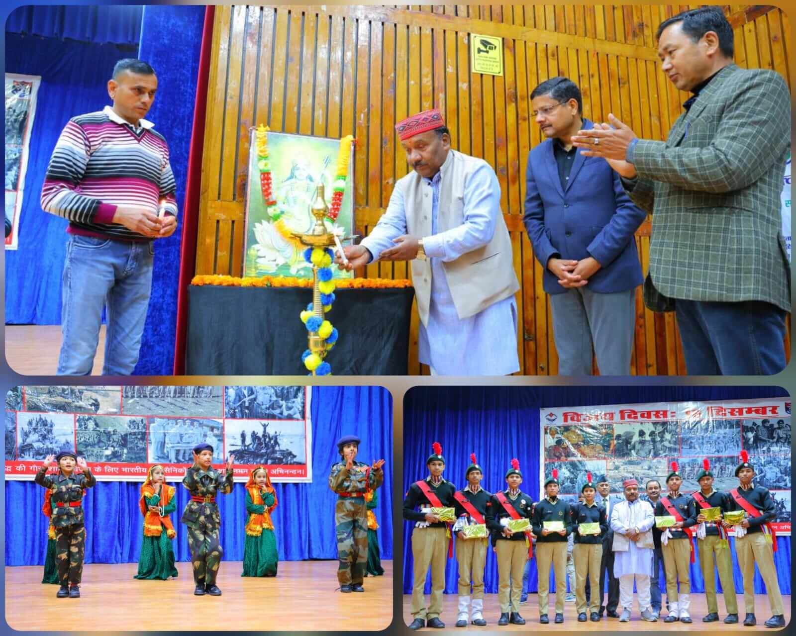 पौड़ी/श्रीनगर गढ़वाल। 1971 के भारत–पाकिस्तान युद्ध में भारत की ऐतिहासिक विजय की स्मृति में जनपद में विजय दिवस हर्षोल्लास एवं गरिमामय वातावरण में मनाया गया। इस अवसर पर विभिन्न विद्यालयों के छात्र-छात्राओं ने एनसीसी कैडेट्स के नेतृत्व में एजेंसी चौक से कलेक्ट्रेट परिसर तक मार्च पास्ट निकाला। मार्च पास्ट को स्थानीय विधायक राजकुमार पोरी ने एजेंसी चौक पर हरी झंडी दिखाकर रवाना किया।इसके उपरांत विधायक एवं अन्य अधिकारियों द्वारा शहीद स्मारक पर पुष्पचक्र अर्पित कर देश के वीर शहीदों को श्रद्धासुमन अर्पित किए गए। इस दौरान पुलिस बल द्वारा शहीदों के सम्मान में गार्ड ऑफ ऑनर भी दिया गया। इसके उपरांत प्रेक्षागृह में आयोजित कार्यक्रम में स्थानीय विधायक राजकुमार पोरी व मुख्य विकास अधिकारी गिरीश गुणवंत ने दीप प्रज्ज्वलित कर कार्यक्रम का शुभारंभ किया। कार्यक्रम के दौरान राजकीय आदर्श प्राथमिक विद्यालय की छात्राओं द्वारा प्रस्तुत देशभक्ति गीतों ने पूरे सभागार को देशप्रेम की भावना से ओत-प्रोत कर दिया। इस अवसर पर वीर सैनिकों एवं शहीद सैनिकों की वीरांगनाओं को सम्मानित किया गया। कार्यक्रम को संबोधित करते हुए विधायक राजकुमार पोरी ने कहा कि जब देश का जांबाज़ सिपाही सीमाओं पर दिन-रात देश की रक्षा करता है,तभी हम देश के भीतर सुरक्षित वातावरण में खुली हवा में सांस ले पाते हैं। उन्होंने कहा कि देश सर्वोपरि है और हर नागरिक अपने-अपने कार्यक्षेत्र में ईमानदारी व कर्तव्यनिष्ठा के साथ कार्य कर देश की सेवा कर सकता है।उन्होंने कहा कि 1971 के युद्ध में पौड़ी जनपद के 33 वीर सैनिकों ने अपने प्राणों की आहुति दी,जिसे हम कभी भुला नहीं सकते। उन्होंने युवाओं से देशभक्ति,अनुशासन और सेवा-भाव को अपने जीवन का लक्ष्य बनाने का आह्वान किया। मुख्य विकास अधिकारी गिरीश गुणवंत ने कहा कि 1971 का भारत–पाकिस्तान युद्ध भारतीय सेना के अदम्य साहस,शौर्य और रणनीतिक कौशल का प्रतीक है,जिसके परिणामस्वरूप बांग्लादेश को स्वतंत्रता प्राप्त हुई। उन्होंने युद्ध की ऐतिहासिक पृष्ठभूमि और परिणामों पर प्रकाश डालते हुए कहा कि यह विजय केवल सैन्य जीत नहीं,बल्कि मानवता और न्याय की जीत थी। उन्होंने इस अवसर पर समस्त जनपदवासियों को विजय दिवस की शुभकामनाएं दीं और कहा कि हमें अपने वीर सैनिकों के बलिदान से प्रेरणा लेकर राष्ट्र निर्माण में योगदान देना चाहिए। 1971 के युद्ध में सम्मिलित रहे एवं प्रत्यक्षदर्शी सेवानिवृत्त कैप्टन सत्य प्रकाश धस्माणा ने अपने अनुभव साझा करते हुए कहा कि यह युद्ध भारतीय सेना के साहस,अनुशासन और नेतृत्व क्षमता का जीवंत उदाहरण है।उन्होंने कहा कि इस युद्ध में पाकिस्तान के 93,000 सैनिकों का आत्मसमर्पण भारतीय सैन्य 