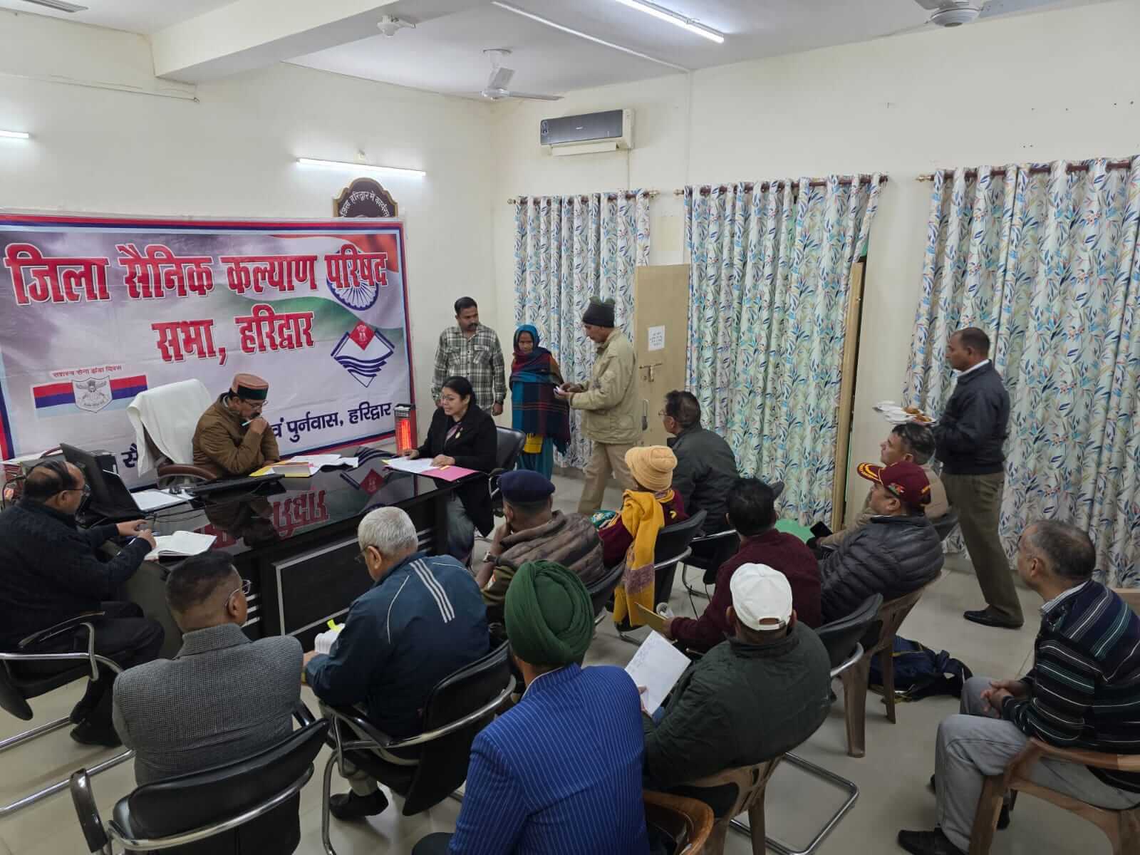 हरिद्वार/श्रीनगर गढ़वाल। हरिद्वार अपर जिलाधिकारी प्रशासन पीआर चौहान की अध्यक्षता में कलेक्ट्रेट स्थित कार्यालय में 'जिला सैनिक परिषद' की चतुर्थ त्रैमासिक बैठक आयोजित की गई। बैठक का संचालन जिला सैनिक कल्याण अधिकारी विंग कमांडर डाॅ.सरिता पंवार (अ.प्रा.) द्वारा किया गया,जिन्होंने अपर जिलाधिकारी,अन्य अधिकारियों एंव पूर्व सैनिकों का स्वागत करते हुए पूर्व की त्रैमासिक बैठक के बिन्दुओं की समीक्षा एंव कृत कार्यवाही से अवगत कराया एंव अपर जिलाधिकारी से निर्देश प्राप्त किये,तत्पश्चात् पूर्व सैनिकों द्वारा उठायें गये बिन्दुओं से अवगत कराया गया। अपर जिलाधिकारी द्वारा शहीद स्मारक हेतु भूमि के चिन्हिकरण,शहीद सैनिक कैप्टेन जगदीश चन्द्र भटट् की स्मृति में शहीद द्वार के निर्माण,भमि अधिग्रहण का मुआवजा,रास्ते पर अतिक्रमण,भूमि क्रय,वरिष्ठ नागरिकों की सुरक्षा के संबंध में उठाये गये बिन्दुओं पर चर्चा करने के उपरान्त संबंधित विभागों एंव जिला सैनिक कल्याण कार्यालय को नियमानुसार अग्रिम कार्यवाही किये जाने हेतु निर्देशित किया गया और अपर जिलाधिकार द्वारा पूर्व सैनिकों के कार्यों को प्राथमिकता पर किये जाने का आश्वासन दिया गया। अंत में जिला सैनिक कल्याण अधिकारी विंग कमांडर डाॅ.सरिता पंवार (से.नि.) ने सभी अधिकारियों व अतिथियों को धन्यवाद ज्ञापित किया। बैठक में जिला सैनिक कल्याण कार्यालय के सभी कार्मिक उपस्थित रहे। बैठक में जिला पूर्ति अधिकारी,सहायक मुख्य चिकित्साधिकारी,निरीक्षक पुलिस विभाग,पूर्व सैनिक व ब्लाक प्रतिनिधि उपस्थित हुए।