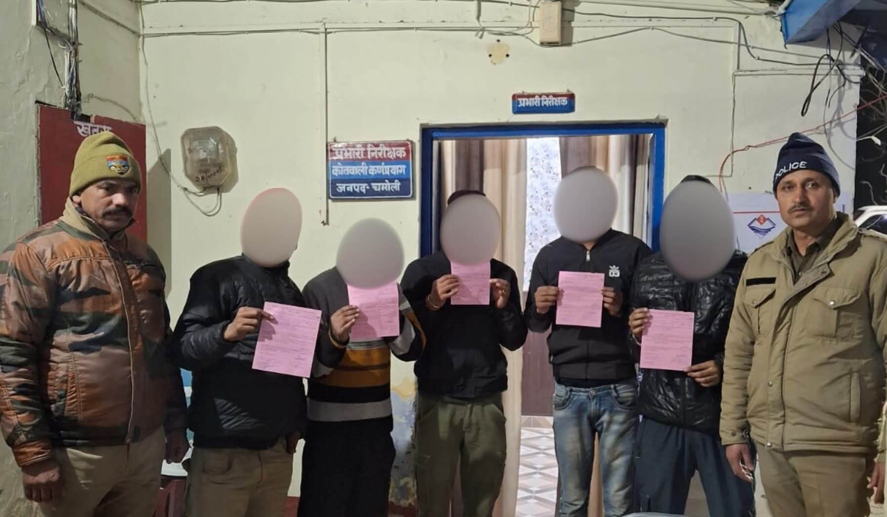 कर्णप्रयाग-चमोली/श्रीनगर गढ़वाल।कानून व्यवस्था और यातायात व्यवस्था को सुदृढ़ बनाए रखने के उद्देश्य से पुलिस अधीक्षक चमोली सुरजीत सिंह पँवार के निर्देशानुसार कर्णप्रयाग क्षेत्र में सघन चेकिंग अभियान चलाया गया। अभियान के दौरान संदिग्ध व्यक्तियों और वाहनों की गहन जांच की गई। जांच के दौरान दो वाहन चालक नशे की हालत में वाहन चलाते हुए पाए गए। पुलिस द्वारा दोनों चालकों को मौके पर ही हिरासत में लेते हुए आवश्यक कानूनी कार्रवाई की गई और उनके वाहनों को सीज कर दिया गया। गिरफ्तार किए गए चालकों में अनूप बिष्ट निवासी ग्राम सिवाई तथा असीम खान निवासी सुभाष नगर कर्णप्रयाग शामिल हैं। इसके अतिरिक्त सार्वजनिक स्थानों पर शराब के नशे में पाए गए पांच व्यक्तियों के विरुद्ध भी कार्रवाई की गई। पुलिस ने सभी को भविष्य में अनुशासित और कानून के अनुरूप आचरण बनाए रखने की सख्त हिदायत दी। कार्रवाई की जद में आए व्यक्तियों में दीपम सिंह रावत,राहुल देवराड़ी,उपेंद्र रावत, सतेन्द्र रावत और अमन खान शामिल हैं। इसी दौरान कुटुंब न्यायालय गोपेश्वर द्वारा जारी गिरफ्तारी वारंट की तामील करते हुए वारंटी अभियुक्त विनोद कुमार निवासी ग्राम बमोथ को कर्णप्रयाग पुलिस ने गिरफ्तार किया। अभियुक्त को आगे की प्रक्रिया के लिए न्यायालय में प्रस्तुत किया जाएगा। कर्णप्रयाग पुलिस ने स्पष्ट किया है कि नशे में वाहन चलाना,सार्वजनिक स्थानों पर अव्यवस्थित आचरण और न्यायालय के आदेशों की अवहेलना किसी भी स्थिति में स्वीकार नहीं की जाएगी। आमजन की सुरक्षा को ध्यान में रखते हुए इस तरह के अभियान आगे भी निरंतर जारी रहेंगे।