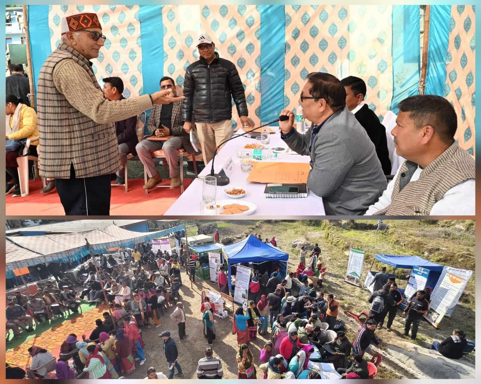 रूद्रप्रयाग/श्रीनगर गढ़वाल।मुख्यमंत्री उत्तराखण्ड के निर्देशानुसार प्रदेशभर में संचालित जन-जन की सरकार,जन-जन के द्वार अभियान के अंतर्गत जनपद रुद्रप्रयाग की 27 न्याय पंचायतों में बहुउद्देशीय शिविरों का आयोजन किया जा रहा है। इसी क्रम में आज दिनांक 20 दिसंबर, 2025 को जनपद के तीन स्थानों—जूनियर हाई स्कूल,फलई,राजकीय इंटर कॉलेज,मनसूना,एवं राजकीय इंटर कॉलेज, चोपड़ा में बहुउद्देशीय शिविरों/“प्रशासन गांव की ओर” कार्यक्रम का आयोजन किया गया। जूनियर हाई स्कूल,फलई जूनियर हाई स्कूल,फलई में आयोजित शिविर की अध्यक्षता मुख्य विकास अधिकारी राजेंद्र सिंह रावत द्वारा की गई। कार्यक्रम स्थल पर पहुँचने पर उन्होंने सर्वप्रथम विभिन्न विभागों द्वारा लगाए गए स्टॉलों का निरीक्षण किया। इन स्टॉलों के माध्यम से ग्रामीणों को विभागीय योजनाओं की जानकारी दी गई तथा पात्र लाभार्थियों को मौके पर ही योजनाओं से लाभान्वित किया गया। शिविर में उद्यान एवं खाद्य प्रसंस्करण,कृषि,पशुपालन,डेयरी,मत्स्य,उद्योग,समाज कल्याण,पंचायती राज/ग्रामीण विकास,स्वास्थ्य विभाग द्वारा आयुष्मान आरोग्य शिविर,राजस्व विभाग,महिला सशक्तीकरण एवं बाल विकास,समान नागरिक संहिता (यूसीसी) पंजीकरण,राशन कार्ड केवाईसी,एलपीजी केवाईसी सहित विभिन्न विभागों ने सहभागिता की। मुख्य विकास अधिकारी ने सभी विभागों को निर्देश दिए कि जनकल्याणकारी योजनाओं का लाभ समयबद्ध एवं पारदर्शी तरीके से प्रत्येक पात्र व्यक्ति तक सुनिश्चित किया जाए। इसके पश्चात विभिन्न विभागीय अधिकारियों द्वारा अपने-अपने विभाग से संबंधित योजनाओं एवं आवेदन प्रक्रियाओं की जानकारी ग्रामीणों को दी गई।सीडीओ के निर्देशानुसार ई-डिस्ट्रिक्ट मैनेजर अमित रावत द्वारा ग्रामीणों को समान नागरिक संहिता (यूसीसी) तथा यूसीसी पोर्टल पर पंजीकरण की प्रक्रिया की जानकारी दी गई। उन्होंने बताया कि 26 मार्च 2010 के बाद संपन्न विवाहों का पंजीकरण अनिवार्य है तथा सभी पात्र नागरिक शीघ्र पंजीकरण कराएं।जनसुनवाई में उठाई गईं स्थानीय समस्याएं जनसुनवाई के दौरान ग्रामीणों द्वारा 83 समस्याएं अधिकारियों के समक्ष रखी गईं,जिनमें से 57 समस्याओं का समाधान मौके पर ही कर दिया गया। शेष समस्याओं के शीघ्र निस्तारण हेतु संबंधित विभागों को निर्देश दिए गए। ग्रामीणों ने बंदरों,सूअरों एवं अन्य जंगली जानवरों की बढ़ती सक्रियता से उत्पन्न समस्याओं की ओर ध्यान आकृष्ट कराया।इस पर मुख्य विकास अधिकारी ने वन विभाग को तत्काल टीम भेजकर बंदर पकड़ने की कार्रवाई करने के निर्देश दिए।इसके अतिरिक्त विद्युत,सड़क,आवास,गौशालाओं,सौर ऊर्जा आदि से संबंधित समस्याएं भी रखी गईं। शिविर में समान नागरिक संहिता के अंतर्गत 14 विवाह 