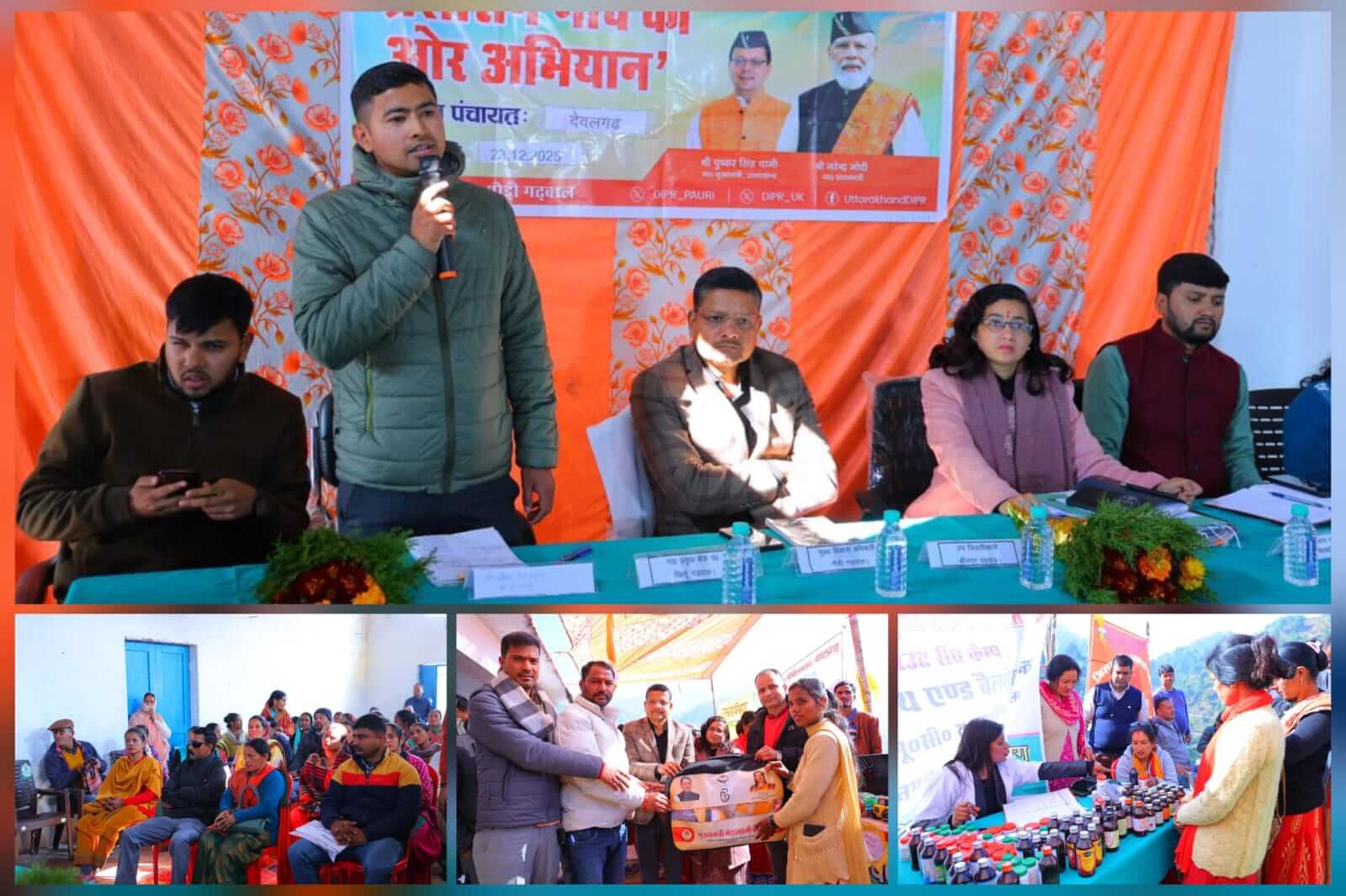 पौड़ी/श्रीनगर गढ़वाल। मुख्यमंत्री पुष्कर सिंह धामी के निर्देशन में संचालित जन-जन की सरकार,जन-जन के द्वार कार्यक्रम के तहत जनपद की 115 न्याय पंचायतों में बहुउद्देश्यीय शिविरों का आयोजन किया जा रहा है। इसी क्रम में मंगलवार को विकासखंड खिर्सू की न्याय पंचायत देवलगढ़ में बहुउद्देश्यीय शिविर आयोजित किया गया। शिविर की अध्यक्षता प्रभारी जिलाधिकारी एवं मुख्य विकास अधिकारी गिरीश गुणवंत ने की। शिविर में कुल 276 लाभार्थियों को योजनाओं से लाभान्वित किया गया। शिविर में प्रभारी जिलाधिकारी ने विभिन्न विभागों द्वारा लगाए गए स्टॉलों का निरीक्षण किया और अधिकारियों को निर्देश दिए कि शिविर में आने वाले पात्र लोगों को सरकारी योजनाओं की जानकारी देने के साथ ही उन्हें योजनाओं से लाभान्वित भी किया जाए। बहुउद्देशीय शिविर के दौरान उन्होंने स्थानीय लोगों की समस्याएं सुनी। शिविर में कुल 30 शिकायतें दर्ज हुई,जिनमें से अधिकांश का मौके पर ही निस्तारण कर दिया गया। प्रभारी जिलाधिकारी ने शेष शिकायतों के शीघ्र समाधान के लिए संबंधित विभागों के अधिकारियों को निर्देश दिए। शिविर में अधिकतर शिकायतें जल संस्थान,विद्युत विभाग,लोक निर्माण विभाग और वन विभाग से रहीं। प्रभारी जिलाधिकारी गिरीश गुणवंत ने कहा कि जन-जन की सरकार,जन-जन के द्वार कार्यक्रम के तहत लोगों की समस्याओं का समाधान उनके द्वार पर जाकर किया जा रहा है।उन्होंने बताया कि यह अभियान 18 दिसंबर से शुरू होकर आगामी 18 मार्च तक जनपद की सभी 115 न्याय पंचायतों में संचालित किया जाएगा,जिससे आमजन को सरकारी योजनाओं का सीधा लाभ मिल सके। शिविर में समाज कल्याण,स्वास्थ्य,पशुपालन,कृष,आयुर्वेदिक एवं यूनानी,वन,होम्योपैथिक,उद्यान,खाद्य पूर्ति विभाग सहित कुल 23 विभागों द्वारा स्टॉल लगाए गए। सैनिक कल्याण विभाग ने सात पूर्व सैनिकों को केंद्र व राज्य सरकार की योजनाओं की जानकारी दी।उद्यान विभाग द्वारा 10 लाभार्थियों को योजनाओं की जानकारी दी गयी तथा तीन लोगों को यंत्र वितरण और 10 लाभार्थियों को कीटनाशक व खाद वितरित की गयी।आयुर्वेदिक विभाग ने 80 लोगों की स्वास्थ्य जांच कर 68 को दवाइयां वितरित कीं। बाल विकास विभाग ने दो लाभार्थियों को मुख्यमंत्री महालक्ष्मी किट,दो गोद भराई और दो अन्नप्राशन कराए तथा 15 लोगों को योजनाओं की जानकारी दी।पशुपालन विभाग द्वारा 9 पशुपालकों को पशुओं की दवाइयां दी और 13 लोगों को विभागीय योजनाओं से अवगत कराया गया। कृषि विभाग ने 12 लाभार्थियों को कृषि यंत्र तथा 4 को कृषि से संबंधित दवाइयां वितरित कीं। राजस्व विभाग ने मौके पर ही 4 शिकायतों का निस्तारण किया। रेशम विभाग द्वारा 12 लोगों को योजनाओं की जानकारी दी गई,जबकि स्वास्थ्य विभाग ने 27 लोगों को दवाइया