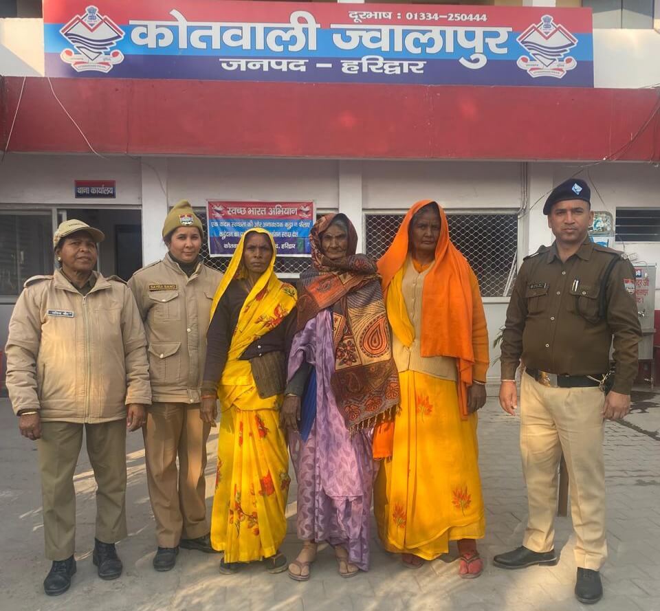 प्रदीप कुमार ज्वालापुर-हरिद्वार/श्रीनगर गढ़वाल। हरिद्वार हरदोई जनपद से हरिद्वार भ्रमण पर आई 75 वर्षीय बुजुर्ग महिला के परिजनों से बिछुड़ जाने के मामले में कोतवाली ज्वालापुर पुलिस ने संवेदनशीलता और तत्परता दिखाते हुए महिला को सकुशल उसके परिजनों से मिलाया।जानकारी के अनुसार महेशी देवी पत्नी स्वर्गीय नोखे सिंह,उम्र 75 वर्ष,निवासी ग्राम लोधी बगोली,थाना बगोली,जिला हरदोई (उत्तर प्रदेश) 24 दिसंबर 2025 को अपने परिजनों के साथ हरिद्वार के हरकी पैड़ी क्षेत्र में भ्रमण के लिए आई थीं। 25 दिसंबर 2025 को भ्रमण के दौरान वे हरकी पैड़ी क्षेत्र में अपने परिजनों से बिछुड़ गईं और रातभर भटकती रहीं। 26 दिसंबर 2025 की सुबह वह कोतवाली ज्वालापुर पहुंचीं।अत्यधिक ठंड के कारण बुजुर्ग महिला की हालत खराब थी।पुलिस ने तत्काल मानवता का परिचय देते हुए उन्हें थाने में सुरक्षित स्थान पर बैठाया,गर्म कपड़े और शॉल उपलब्ध कराए,अलाव जलाया गया तथा जलपान कराया गया। महिला की पूरी देखभाल की गई,जिससे वह कुछ समय बाद सामान्य हो सकीं। महिला ने अपना नाम और हरदोई का निवासी होना बताया,लेकिन उनके पास कोई मोबाइल नंबर या अन्य जानकारी उपलब्ध नहीं थी,जिससे परिजनों तक पहुंचना चुनौतीपूर्ण हो गया।इसके बाद ज्वालापुर पुलिस ने तत्परता दिखाते हुए महिला की फोटो और जानकारी सोशल मीडिया के माध्यम से प्रसारित की और साथ ही हरकी पैड़ी क्षेत्र में परिजनों की तलाश शुरू की।स्थानीय लोगों से बातचीत के दौरान जानकारी मिली कि महिला के परिजन भी रातभर से उनकी तलाश कर रहे हैं। लगातार प्रयासों के बाद पुलिस ने हरकी पैड़ी क्षेत्र में महिला के परिजनों को खोज निकाला।परिजनों से मिलते ही बुजुर्ग महिला भावुक हो उठीं और प्रसन्नता व्यक्त की। कोतवाली ज्वालापुर पुलिस ने बुजुर्ग महिला को सकुशल परिजनों के सुपुर्द किया। इस मानवीय कार्य के लिए परिजनों ने ज्वालापुर पुलिस का आभार व्यक्त किया,वहीं आमजन और मीडिया द्वारा भी पुलिस की इस संवेदनशील पहल की सराहना की गई। इस सराहनीय कार्य में महिला हेड कांस्टेबल कमला चौहान,महिला होमगार्ड शायरा बानो और महिला होमगार्ड राजेन्द्र कौर की महत्वपूर्ण भूमिका रही।