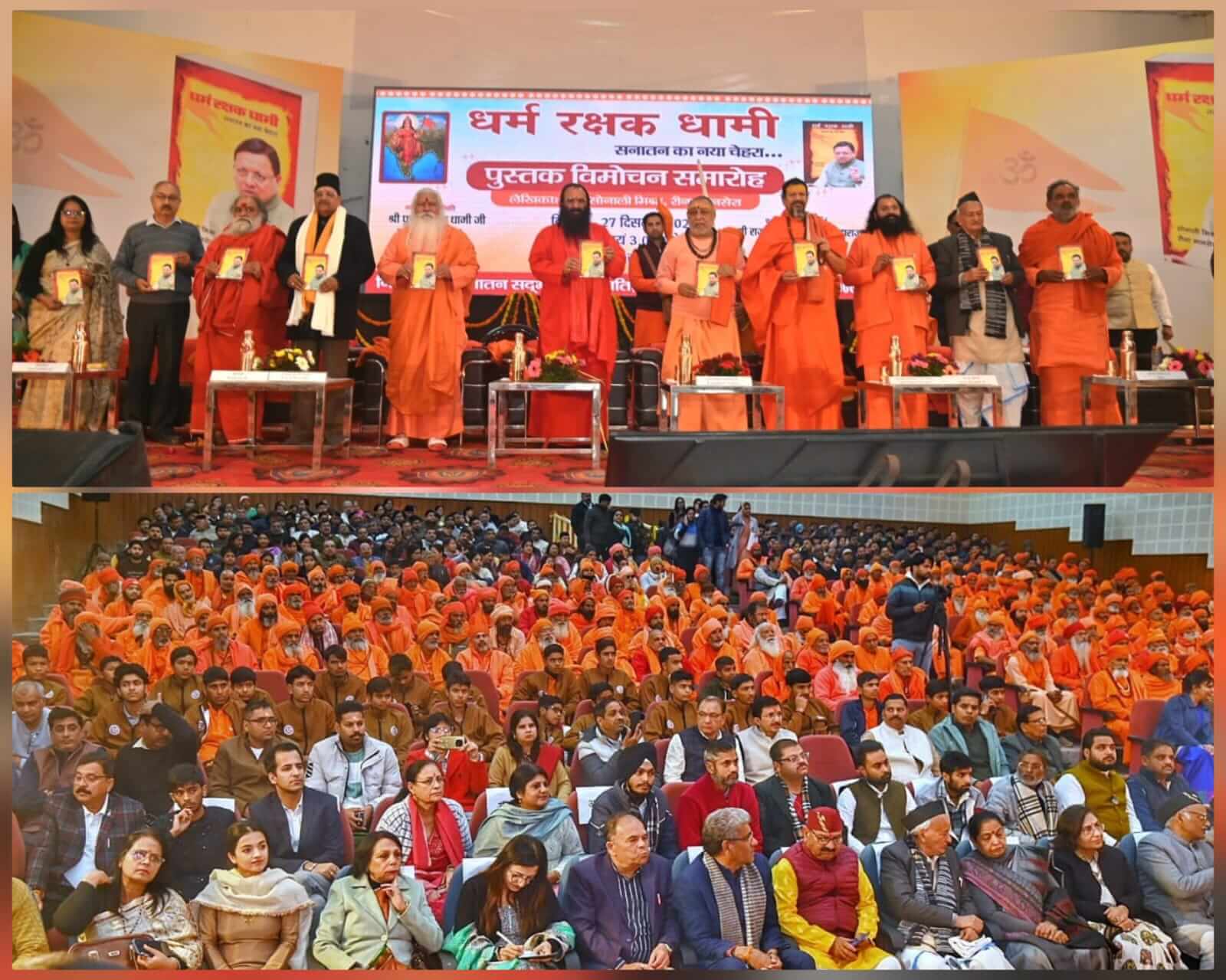 कार्यक्रम में महामंडलेश्वर स्वामी डॉ.शाश्वतानन्द गिरी,महामंडलेश्वर स्वामी रूपेंद्र प्रकाश महाराज,महामंडलेश्वर स्वामी ललितानन्द महाराज,स्वामी यतीश्वरानंद ने भी सम्बोधन में लेखिकाओं को शुभकामनाएं देते हुए धामी सरकार के प्रयासों की सराहना की। पुस्तक का परिचय डॉ.सोनाली मिश्रा व अतिथियों का आभार रीना मानसेरा ने व्यक्त किया। कार्यक्रम का सञ्चालन डॉ.देवेंद्र भसीन ने किया। अतिथियों का स्वागत प्रेस क्लब के पूर्व अध्यक्ष् अमित शर्मा,राज कुमार शर्मा,प्रो.दिनेश चंद्र शास्त्री,विश्वास सक्सेना,अनुज सिंह,अमित शर्मा,विकास तिवारी,पत्रकार शैलेन्द्र सिंह,डॉ.शिवा अग्रवाल,रोहित भाटिया,कपिल मोदी,आदित्य गौड़,अधीर कौशिक आदि ने किया।इस अवसर पर राज्यसभा सांसद कल्पना सैनी,राज्य मंत्री विनय रोहिल्ला,दिनेश मानसेरा,श्यामवीर सैनी,जयपाल सिंह, विश्वास डाबर,सुनील सैनी,शोभाराम प्रजापति,अजीत चौधरी,मधु भट्ट,गीता खन्ना,देशराज कर्णवाल,मेयर किरण जैसल,काशीपुर मेयर दीप बाली,भाजपा जिला अध्यक्ष आशुतोष शर्मा,महामंत्री संजीव चौधरी व हीरा सिंह बिष्ट, उपाध्यक्ष तरुण नैय्यर,मंत्री विनीत जोली,दिव्यांशु विद्यार्थी,वासु पाराशर,कपिल जौनसारी,डॉ.विशाल गर्ग,पार्षद आकृषिका,भाजयुमो जिलाध्यक्ष अभिनव चौहान,कथा वाचक पवन शास्त्री आदि सैकड़ो संतों,गणमान्य लोगों की उपस्थिति में धर्म रक्षक धामी पुस्तक का विमोचन हुआ।