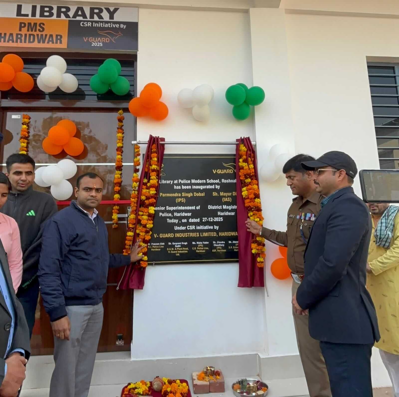 हरिद्वार/श्रीनगर गढ़वाल। हरिद्वार पुलिस लाइन रोशनाबाद परिसर में 27 दिसंबर 2025 को नव निर्मित आधुनिक लाइब्रेरी का उद्घाटन किया गया। उद्घाटन जिलाधिकारी हरिद्वार मयूर दीक्षित और वरिष्ठ पुलिस अधीक्षक हरिद्वार प्रमेन्द्र सिंह डोबाल द्वारा किया गया। इस अवसर पर विद्यार्थियों के शैक्षणिक विकास को प्रोत्साहित करने की दिशा में इस पहल को सराहनीय बताया गया। यह लाइब्रेरी सीएसआर योजना के अंतर्गत वी-गार्ड कंपनी के सहयोग से तैयार की गई है।लाइब्रेरी में अध्ययन के लिए अनुकूल वातावरण,बैठने की समुचित व्यवस्था और आवश्यक शैक्षणिक संसाधन उपलब्ध कराए गए हैं,जिससे विद्यार्थियों को शांत और सुविधाजनक माहौल में पढ़ाई करने का अवसर मिलेगा। लाइब्रेरी की स्थापना से पुलिस मॉडल स्कूल में अध्ययनरत विद्यार्थियों को एक महत्वपूर्ण शैक्षणिक सुविधा प्राप्त हुई है। यह पहल न केवल बच्चों की अध्ययनशीलता को बढ़ावा देगी,बल्कि उनकी प्रतियोगी परीक्षाओं की तैयारी और समग्र शैक्षणिक विकास में भी सहायक सिद्ध होगी। उद्घाटन कार्यक्रम के दौरान पुलिस अधीक्षक अपराध,पुलिस अधीक्षक नगर,सिटी और देहात सर्किल के क्षेत्राधिकारी,वी-गार्ड कंपनी के अधिकारी तथा पुलिस लाइन परिसर के कर्मचारी उपस्थित रहे। इसके अतिरिक्त,CSR के अंतर्गत किए गए कार्य में वी-गार्ड इंडस्ट्रीज़ लिमिटेड की ओर से जी.एम.-हरिद्वार प्लांट गुरप्रीत सिंह,जी.एम.-रुड़की प्लांट विनय पांडेय,एच.आर.मैनेजर संदीप शर्मा एवं धर्मेन्द्र सिंह तथा अन्य कंपनी पदाधिकारी संजीव मेसन,विजयशंकर,आर्यन,राजेश आदि की गरिमामयी उपस्थिति रही।