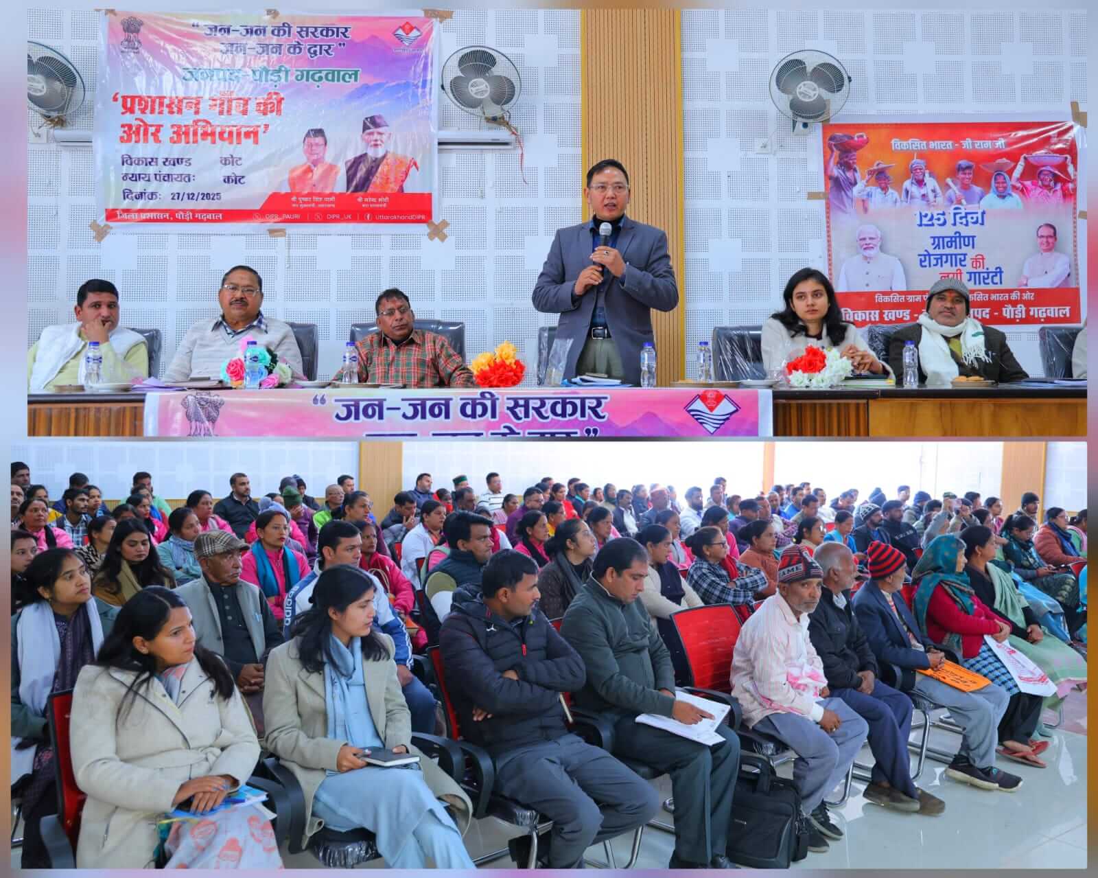 पौड़ी/श्रीनगर गढ़वाल। मुख्यमंत्री पुष्कर सिंह धामी के निर्देशन में संचालित जन-जन की सरकार,जन-जन के द्वार अभियान ग्रामीण क्षेत्रों में प्रभावी परिणाम दे रहा है। जिसके तहत शनिवार को विकासखंड कोट की न्याय पंचायत कोट में आयोजित बहुउद्देश्यीय शिविर में बड़ी संख्या में ग्रामीणों ने भागीदारी की। अपर जिलाधिकारी अनिल सिंह गर्ब्याल की अध्यक्षता में आयोजित शिविर में विभिन्न रेखीय विभागों की योजनाओं के माध्यम से कुल 250 लाभार्थियों को प्रत्यक्ष लाभ प्रदान किया गया। शिविर के दौरान प्राप्त 49 शिकायतों में से 11 शिकायतों का निस्तारण मौके पर ही कर दिया गया,जबकि शेष शिकायतों को संबंधित विभागों के माध्यम से शीघ्र कार्यवाही हेतु चिन्हित किया गया। प्राप्त शिकायतें मुख्यतः लोक निर्माण,पेयजल,राजस्व,वन,स्वास्थ्य सेवाएं,उद्यान एवं खाद्य आपूर्ति विभागों से संबंधित रहीं।अपर जिलाधिकारी ने कहा कि यह विशेष अभियान ग्रामीणों को शासन-प्रशासन से सीधे जोड़ने का सशक्त माध्यम है। इसका उद्देश्य लोगों को योजनाओं की जानकारी उपलब्ध कराने के साथ-साथ उनकी व्यावहारिक समस्याओं का त्वरित समाधान सुनिश्चित करना है। उन्होंने अधिकारियों को निर्देशित किया कि प्रत्येक पात्र लाभार्थी को योजनाओं का लाभ समयबद्ध तरीके से उपलब्ध कराया जाए। उन्होंने बताया कि यह विशेष अभियान 18 दिसंबर से प्रारंभ होकर 18 मार्च तक जनपद की 115 न्याय पंचायतों में क्रमवार आयोजित किया जाएगा। शिविर के नोडल अधिकारी एवं मुख्य चिकित्सा अधिकारी डॉ.शिव मोहन शुक्ला ने बताया कि प्राप्त शिकायतों पर त्वरित कार्रवाई की गयी है तथा शेष प्रकरणों को विभागीय कार्यवाही हेतु भेज दिया गया है। शिविर में उद्यान,वन,स्वास्थ्य,आयुर्वेदिक एवं यूनानी,पशुपालन,खाद्य एवं पूर्ति,कृषि,समाज कल्याण,बाल विकास सहित कुल 23 विभागों द्वारा सूचना एवं सेवा स्टॉल स्थापित किए गए। उद्यान विभाग द्वारा 25,ग्रामोत्थान परियोजना द्वारा 40,कृषि विभाग द्वारा 15 तथा पशुपालन विभाग द्वारा 20 लाभार्थियों को योजनाओं से लाभान्वित किया गया। स्वास्थ्य विभाग द्वारा 65 तथा आयुष यूनानी विभाग द्वारा 60 ग्रामीणों का स्वास्थ्य परीक्षण कर निःशुल्क दवाइयां वितरित की गईं। साथ ही राजस्व विभाग द्वारा 25 लाभार्थियों को योजनागत लाभ प्रदान किया गया। कार्यक्रम में ब्लॉक प्रमुख कोट गणेश कोहली,ज्येष्ठ प्रमुख उपेन्द्र भट्ट,कनिष्ठ प्रमुख अनिल गुसाईं,क्षेत्र पंचायत सदस्य कोट मधु देवी,क्षेत्र पंचायत कठूड सूरज सिंह चौहान,प्रधान कोट प्रियंका,संयुक्त मजिस्ट्रेट दीक्षिता जोशी,ईई विद्युत अभिनव रावत,बीडीओ कोट शिव सिंह भंडारी,एसडीओ वन आयशा बिष्ट,एसडीओ विद्युत गोविंद सिंह रावत,उप शिक्षाधिकारी भारती गैर