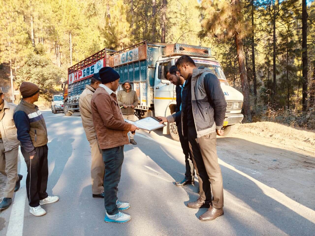पौड़ी/श्रीनगर गढ़वाल। जनपद पौड़ी गढ़वाल के अंतर्गत थलीसैंण से बीरोंखाल मोटर मार्ग पर जिला प्रशासन और परिवहन विभाग द्वारा संयुक्त जांच अभियान चलाया गया। इस अभियान का नेतृत्व उपजिलाधिकारी थलीसैंण कृष्णा त्रिपाठी एवं सहायक संभागीय परिवहन अधिकारी मंगल सिंह की उपस्थिति में किया गया। अभियान के दौरान कुल 14 वाहनों की जांच की गई,जिसमें से 3 वाहनों के चालान किए गए। जांच में कुछ वाहन बिना वैध कागजात,बिना टैक्स एवं बिना हिल ट्रैवलिंग सर्टिफिकेट के संचालित पाए गए,जिनके विरुद्ध नियमानुसार कार्रवाई की गई। इसके अतिरिक्त,हेलमेट न पहनने वाले दोपहिया वाहन चालकों पर भी कार्रवाई करते हुए उन्हें यातायात नियमों का पालन करने की सख्त हिदायत दी गई। प्रशासन द्वारा यह स्पष्ट किया गया कि सड़क सुरक्षा एवं परिवहन नियमों के उल्लंघन को किसी भी स्थिति में बर्दाश्त नहीं किया जाएगा। इस प्रकार के संयुक्त जांच अभियान आगे भी नियमित रूप से जारी रहेंगे,ताकि आमजन की सुरक्षा सुनिश्चित की जा सके और दुर्घटनाओं पर प्रभावी नियंत्रण किया जा सके। प्रशासन ने वाहन चालकों से अपील की है कि वे सभी वैध दस्तावेज साथ रखें,हेलमेट व अन्य सुरक्षा नियमों का पालन करें तथा सुरक्षित एवं जिम्मेदार नागरिक होने का परिचय दें।