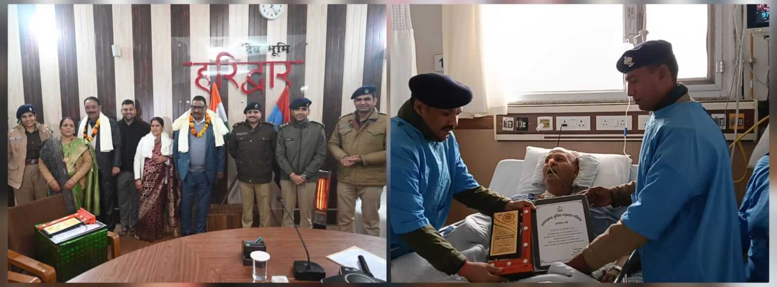 हरिद्वार/श्रीनगर गढ़वाल।हरिद्वार पुलिस कार्यालय सभागार में दिनांक 31 दिसंबर 2025 को लंबे सेवाकाल पूर्ण करने वाले चार सदस्यों को हरिद्वार पुलिस ने ससम्मान विदाई दी। पुलिस अधीक्षक अपराध जितेंद्र मेहरा एवं अन्य अधिकारियों की उपस्थिति में सभी सदस्यों को फूल माला पहनाकर मोमेंटो एवं प्रशस्ति पत्र प्रदान किए गए।विदाई समारोह में सम्मानित सदस्य और उनके सेवाकाल का विवरण इस प्रकार है: अपर उपनिरीक्षक वीरेन्द्र शर्मा:दिनांक 19 मई 1984 को पुलिस विभाग में कानि.के पद पर भर्ती,15 मार्च 1998 को हे.कानि.के पद पर पदोन्नत। मूल रूप से पौड़ी गढ़वाल निवासी,41 वर्षों की सेवा के दौरान हरिद्वार,बिजनौर,मुरादाबाद,पिथौरागढ़ और देहरादून में तैनात। स्वास्थ्य खराब होने के कारण वे कैलाश हॉस्पिटल में भर्ती थे और इस कार्यक्रम में उपस्थित नहीं हो पाए। वरिष्ठ पुलिस अधीक्षक हरिद्वार के निर्देश पर प्रतिसार निरीक्षक पुलिस लाइन एवं मय स्टाफ़ देहरादून कैलाश हॉस्पिटल पहुंचे और परिजनों की उपस्थिति में उन्हें 42 वर्ष की सेवा पूर्ण होने पर ससम्मान विदाई दी गई।हरिद्वार पुलिस उनके शीघ्र स्वस्थ होने की कामना करती है।हे.कानि.(वि.श्रे.) चालक दलवीर सिंह भंडारी: दिनांक 5 अक्टूबर 1984 को कानि.के पद पर भर्ती,14 मार्च 2021 को हे.कानि.के पद पर पदोन्नत। मूल रूप से उत्तरकाशी निवासी,41 वर्षों की सेवा में हरिद्वार के साथ 39वीं वाहिनी मिर्जापुर एवं 40वीं वाहिनी PAC में तैनात।कांस्टेबल सोहन लाल रतूड़ी:दिनांक 18 दिसंबर 2008 को आर्मी कोटे से भर्ती,मूल रूप से टिहरी गढ़वाल निवासी। 17 वर्षों की सेवा के दौरान सभी कार्यकाल हरिद्वार में तैनात।अनुचर सोमदत्त:दिनांक 6 फरवरी 1990 को अनुचर के पद पर भर्ती,मूल रूप से हरिद्वार निवासी। 35 वर्षों की सेवा के दौरान पूरे कार्यकाल हरिद्वार में तैनात। सभी सदस्यों को उनके उत्कृष्ट कार्यों और समर्पित सेवा के लिए विभिन्न अवसरों पर पुरस्कृत किया गया। पुलिस विभाग ने विदाई कार्यक्रम के माध्यम से उनके योगदान को यादगार रूप से सम्मानित किया।