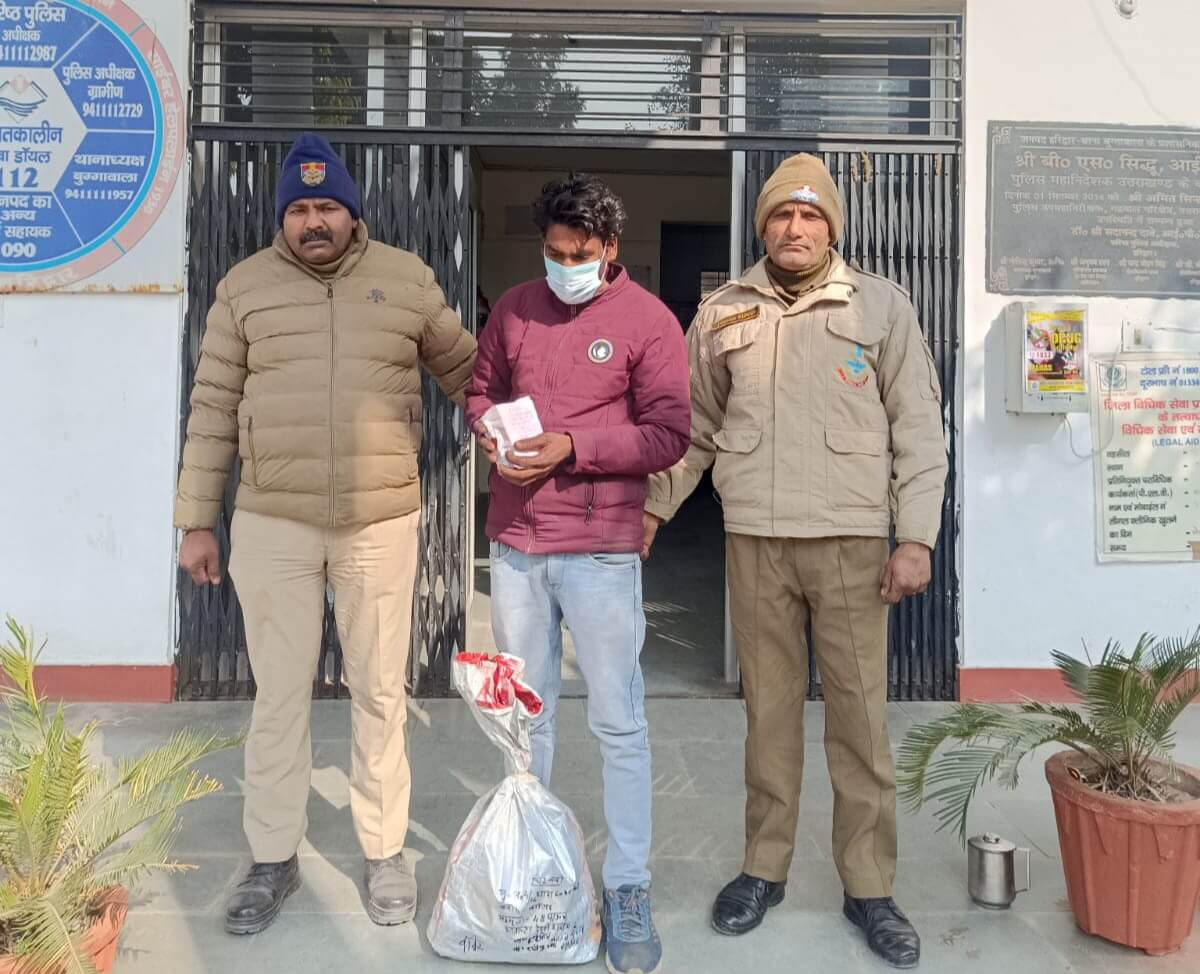 बुग्गावाला-हरिद्वार/श्रीनगर गढ़वाल।हरिद्वार पुलिस ने ड्रग्स फ्री देवभूमि अभियान’ के अंतर्गत अवैध देशी/कच्ची शराब और नशा तस्करों के विरुद्ध प्रभावी कार्रवाई जारी रखी है। प्रभारी निरीक्षक द्वारा अवैध शराब तस्करों की धरपकड़ के लिए अलग-अलग टीमों का गठन किया गया और मुखबिर तंत्र को सक्रिय किया गया। इसी क्रम में 9 जनवरी 2026 को पुलिस टीम ने शहीदवाला ग्रन्ट से आरोपी वाजिद पुत्र नूरमोहम्मद,निवासी शहीदवाला ग्रन्ट,थाना बुग्गावाला,जनपद हरिद्वार को 52 पव्वे देशी शराब (माल्टा मार्का) के साथ पकड़ा।गिरफ्तारी और बरामदगी के आधार पर थाना बुग्गावाला में आबकारी अधिनियम के तहत मामला पंजीकृत किया गया।आरोपी के आपराधिक इतिहास की जानकारी जुटाई जा रही है।आरोपी का नाम व पता वाजिद पुत्र नूरमोहम्मद,निवासी शहीदवाला ग्रन्ट,थाना बुग्गावाला,जनपद हरिद्वार,पुलिस टीम के सदस्य,अपर उप निरीक्षक कुंदन सिंह,कांस्टेबल हरिओम,कांस्टेबल रविन्द्र भण्डारी।