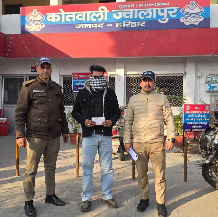 ज्वालापुर-हरिद्वार/श्रीनगर गढ़वाल।हरिद्वार पुलिस द्वारा सट्टा खाईबाड़ी करने वालों के विरुद्ध लगातार कार्रवाई की जा रही है। इसी क्रम में कोतवाली ज्वालापुर पुलिस ने सार्वजनिक स्थान पर सट्टा लगाते हुए एक व्यक्ति को गिरफ्तार किया है।जनपद में अवैध गतिविधियों पर प्रभावी नियंत्रण के लिए चलाए जा रहे अभियान के तहत कोतवाली ज्वालापुर क्षेत्र में अलग-अलग टीमें गठित की गई थीं। जांच और चेकिंग के दौरान 19 जनवरी 2026 को पुलिस टीम ने सट्टा खाईबाड़ी करते हुए एक व्यक्ति को मौके पर पकड़ा।गिरफ्तार आरोपी की पहचान शोभित पुत्र राधेश्याम,निवासी मकान नंबर 931,विष्णु लोक कॉलोनी,कोतवाली रानीपुर, जनपद हरिद्वार के रूप में हुई है।आरोपी के कब्जे से सट्टा पर्ची,पैन,डायरी तथा ₹1470 नगद बरामद किए गए। पकड़े गए आरोपी के विरुद्ध कोतवाली ज्वालापुर में जुआ अधिनियम के अंतर्गत मुकदमा दर्ज कर आगे की वैधानिक कार्रवाई की जा रही है। पुलिस टीम:कांस्टेबल अमित गौड,कांस्टेबल राजेश बिष्ट।