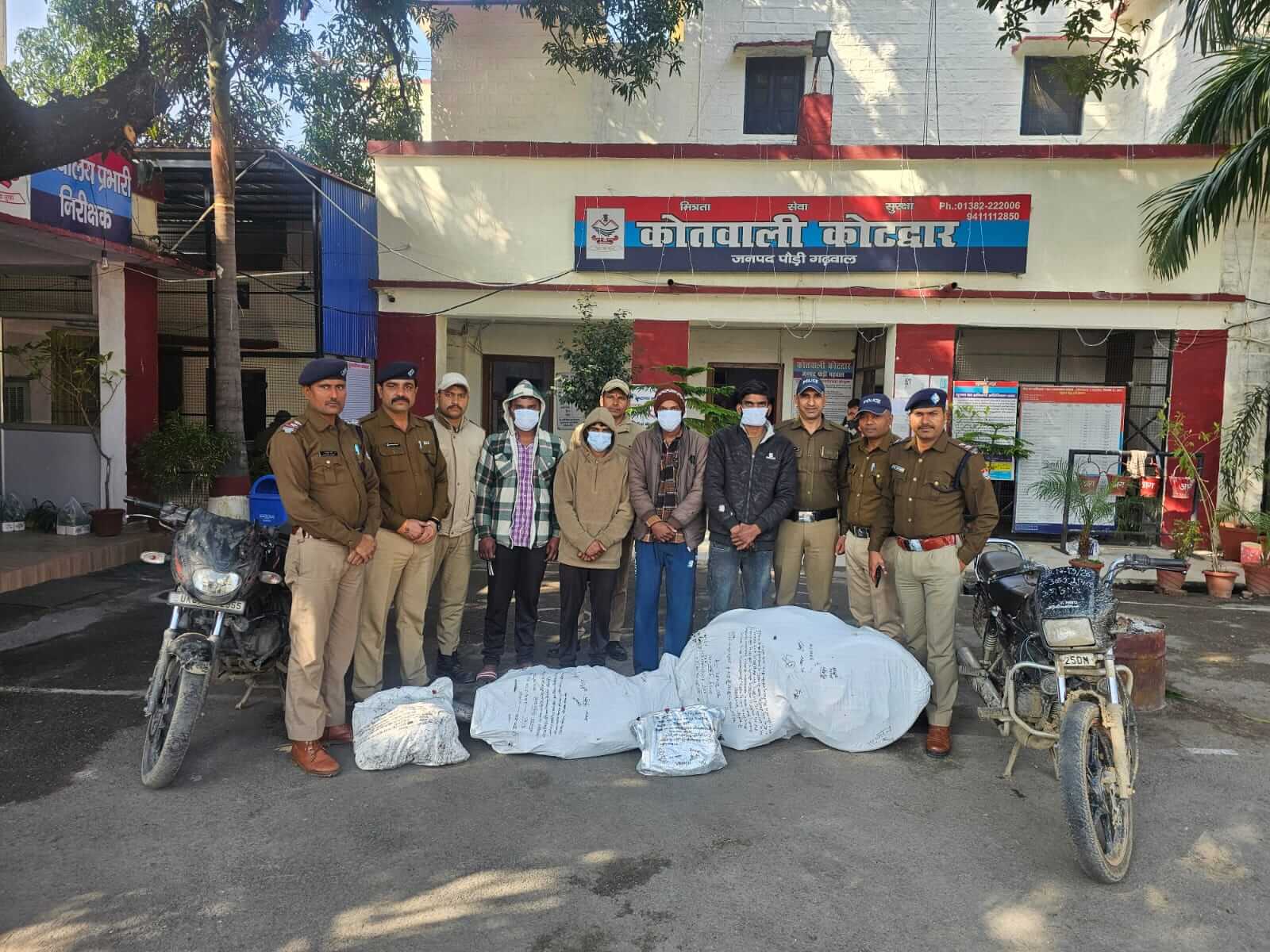 कोटद्वार-पौड़ी/श्रीनगर गढ़वाल।वरिष्ठ पुलिस अधीक्षक पौड़ी सर्वेश पंवार के निर्देश पर कोटद्वार क्षेत्र में वाहन चोरी की बढ़ती घटनाओं पर कड़ा अंकुश लगाने के लिए विशेष अभियान चलाया गया। अभियान के तहत मोटर मैकेनिक सहित चार शातिर वाहन चोरों को गिरफ्तार किया गया। इस कार्रवाई में चोरी की दो मोटरसाइकिल और कई कटे हुए पुर्जे बरामद किए गए।उक्त कार्रवाई में प्रभारी निरीक्षक कोतवाली कोटद्वार के पर्यवेक्षण में वरिष्ठ उप निरीक्षक अनिल चौहान के नेतृत्व में तीन विशेष पुलिस टीमों का गठन किया गया। टीमों द्वारा कोटद्वार में स्थापित लगभग 250 सीसीटीवी कैमरों के फुटेज का गहन विश्लेषण,क्षेत्र में सुरागरसी-पतारसी और आधुनिक सर्विलांस तकनीक के माध्यम से अभियुक्तों की गतिविधियों पर निगरानी रखी गई। तीनों टीमों के समन्वित प्रयासों के परिणामस्वरूप वाहन चोरी में सक्रिय तीन अभियुक्त-वंश,मुकुल और सौरभ को BEL रोड,कोटद्वार से एक चोरी की मोटरसाइकिल स्प्लेंडर (UP25 DM 8667) के साथ गिरफ्तार किया गया। अभियुक्तों के कब्जे से चोरी की गई मोटरसाइकिलें और उनके कटे हुए पुर्जे बरामद किए गए। पूछताछ में अभियुक्तों ने चोरी की अन्य मोटरसाइकिलें कोटकदार,नजीबाबाद निवासी अजय को बेचने की जानकारी दी। पुलिस टीम ने अजय की दुकान से एक काली पल्सर (UK07 BW 2955) और अन्य तीन मोटरसाइकिलों के कटे हुए पुर्जे बरामद किए। इसके बाद अजय (मोटर मैकेनिक) के साथ ही उक्त तीन अभियुक्तों को गिरफ्तार किया गया। नाम-पता अभियुक्त:मुकुल (23 वर्ष) पुत्र रामस्वरूप ग्राम कोटकादर थाना रायपुर नगीना देहात बिजनौर,वंश (21 वर्ष) पुत्र अनिल कुमार राजीव नगर तल्ली काडोली थाना रायपुर देहरादून,सौरभ (26 वर्ष) पुत्र बाबूराम ग्राम कोटकादर थाना रायपुर नगीना देहात बिजनौर,अजय (22 वर्ष) पुत्र सुरेश चंद्र ग्राम कोटकादर थाना रायपुर नगीना देहात बिजनौर,बरामद माल:UP25 DM 8667 स्प्लेंडर,UK07 BW 2955 पल्सर,UK15 2052 डिस्कवर,UK17 4650 अपाचे,UK12 B 6269 ग्लैमर,मोटरसाइकिल के कटे हुए पुर्जे पुलिस टीम:उ.नि.अनिल चौहान,उ.नि.शोयब अली,उ.नि.सैयदुलबहार,उ.नि.विनोद चपराणा,का.चन्द्रपाल,हेड का.करन कुमार,का.शशिकांत त्यागी,होमगार्ड कुलदीप,उपनि.सुशील (CIU),का.हरीश चंद्र (CIU),इस कार्रवाई से वाहन चोरी में सक्रिय संगठित गिरोहों पर सख्त संदेश गया है और पुलिस ने कहा कि चोरी की घटनाओं पर निगरानी लगातार जारी रहेगी।