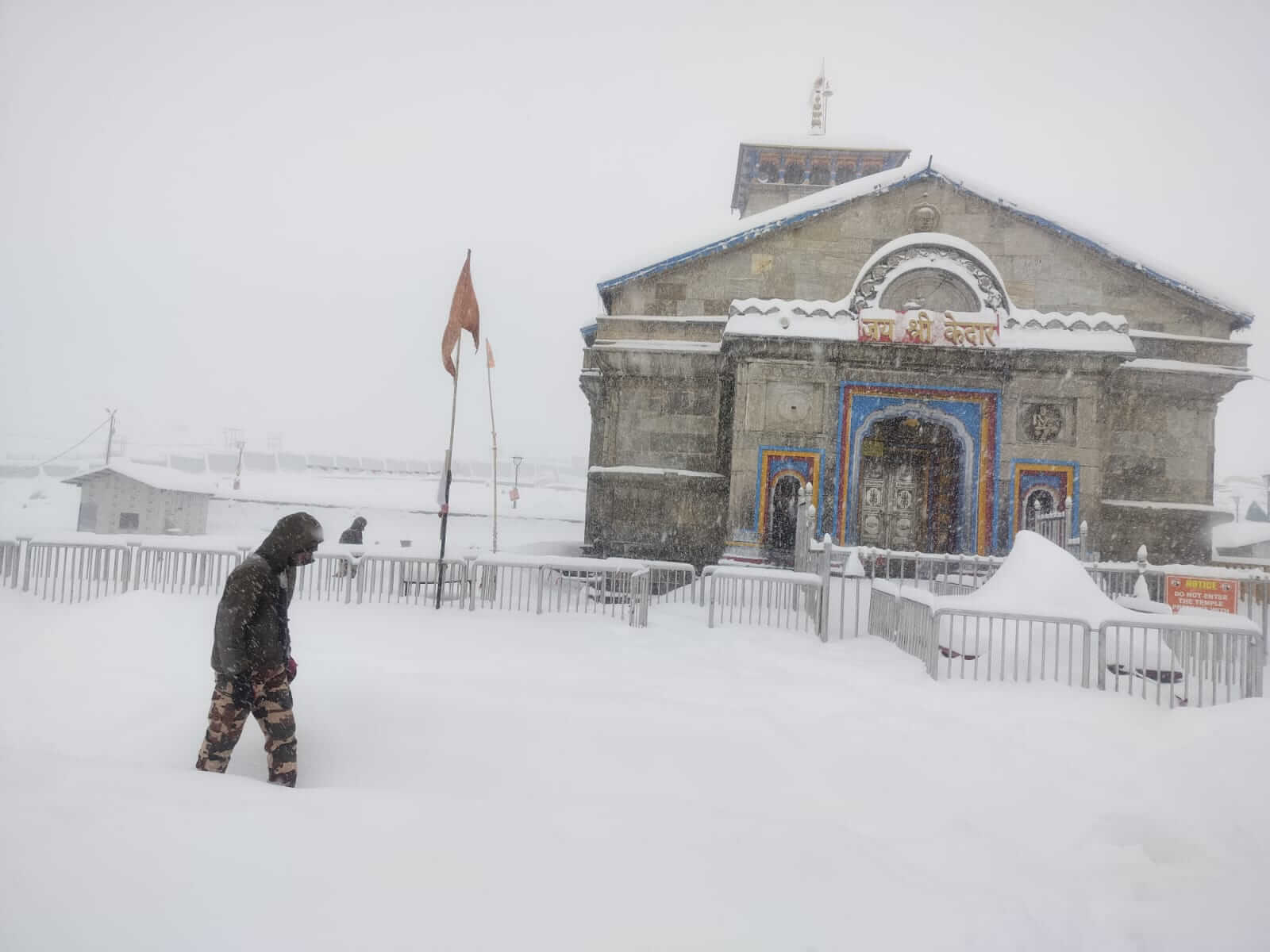 केदारनाथ-रूद्रप्रयाग/श्रीनगर गढ़वाल।उत्तराखण्ड के उच्च हिमालयी क्षेत्रों में लगातार हो रही बर्फबारी के कारण बाबा केदार की नगरी केदारनाथ पूरी तरह बर्फ की सफेद चादर में ढक चुकी है। धाम में इस समय करीब 3 से 4 फीट तक बर्फ जमी हुई है,जबकि तापमान शून्य से 16 डिग्री सेल्सियस नीचे तक पहुंच गया है। इन अत्यंत कठिन और चुनौतीपूर्ण हालातों के बावजूद भारत-तिब्बत सीमा पुलिस और रुद्रप्रयाग पुलिस के जवान पूरी सतर्कता और निष्ठा के साथ अपने कर्तव्यों का निर्वहन कर रहे हैं। कड़ाके की ठंड और तेज बर्फीली हवाओं के बीच सुरक्षा बल मंदिर परिसर सहित आसपास के संवेदनशील क्षेत्रों में लगातार गश्त कर रहे हैं,ताकि धाम की सुरक्षा व्यवस्था पूरी तरह मजबूत बनी रहे। 26 जनवरी के अवसर पर भी जवानों ने भारी बर्फबारी के बीच तिरंगा फहराकर राष्ट्र के प्रति अपनी प्रतिबद्धता और समर्पण का परिचय दिया। मंदिर के कपाट बंद होने के बाद भी केदारनाथ धाम की सुरक्षा,मास्टर प्लान के तहत निर्मित सरकारी संपत्तियों की निगरानी और संरचनाओं की सुरक्षा की जिम्मेदारी सुरक्षा बलों द्वारा लगातार निभाई जा रही है।मौसम विभाग द्वारा जारी अलर्ट और हिमस्खलन की संभावनाओं को देखते हुए पुलिस प्रशासन ने जवानों को अतिरिक्त सतर्कता बरतने के निर्देश दिए हैं।रुद्रप्रयाग जिला प्रशासन और पुलिस विभाग ने संयुक्त रूप से बताया कि विषम भौगोलिक और मौसम परिस्थितियों के बावजूद सुरक्षा बलों का मनोबल ऊंचा है।केदारनाथ धाम में सुरक्षा व्यवस्था पूरी तरह चाक-चौबंद है और किसी भी आपात स्थिति से निपटने के लिए सभी आवश्यक इंतजाम किए गए हैं।