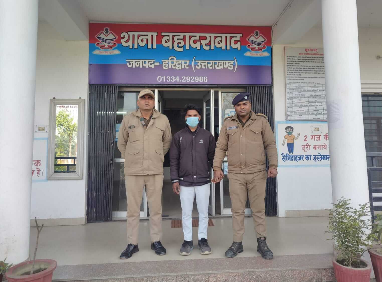 हरिद्वार/श्रीनगर गढ़वाल। थाना बहादराबाद ने नाबालिक से दुष्कर्म के मामले में आरोपी को दबोचने में सफलता प्राप्त की है। बहादराबाद की एक महिला ने दिनांक 13 दिसंबर 2025 को शिकायत दर्ज कराई थी कि उसकी 17 वर्षीय नाबालिक पुत्री के साथ बन्टी नामक युवक ने बहला-फुसलाकर दुष्कर्म किया और परिजनों को जान से मारने की धमकी दी। प्रार्थना पत्र के आधार पर तत्काल कार्रवाई की गई। पुलिस टीम द्वारा आरोपी की तलाश जारी रखी गई और दिनांक 2 फरवरी 2026 को सलेमपुर के पास आरोपी बन्टी,पुत्र रमेश कुमार,निवासी सीमली,थाना लक्सर,हरिद्वार को दबोचा गया। आरोपी को नियमानुसार न्यायालय के समक्ष पेश किया जा रहा है। पुलिस टीम व.उ.नि.नितिन बिष्ट,म.उ.नि.ज्योति नेगी,कांस्टेबल बलवंत सिंह,कांस्टेबल वसीम-CIU हरिद्वार।