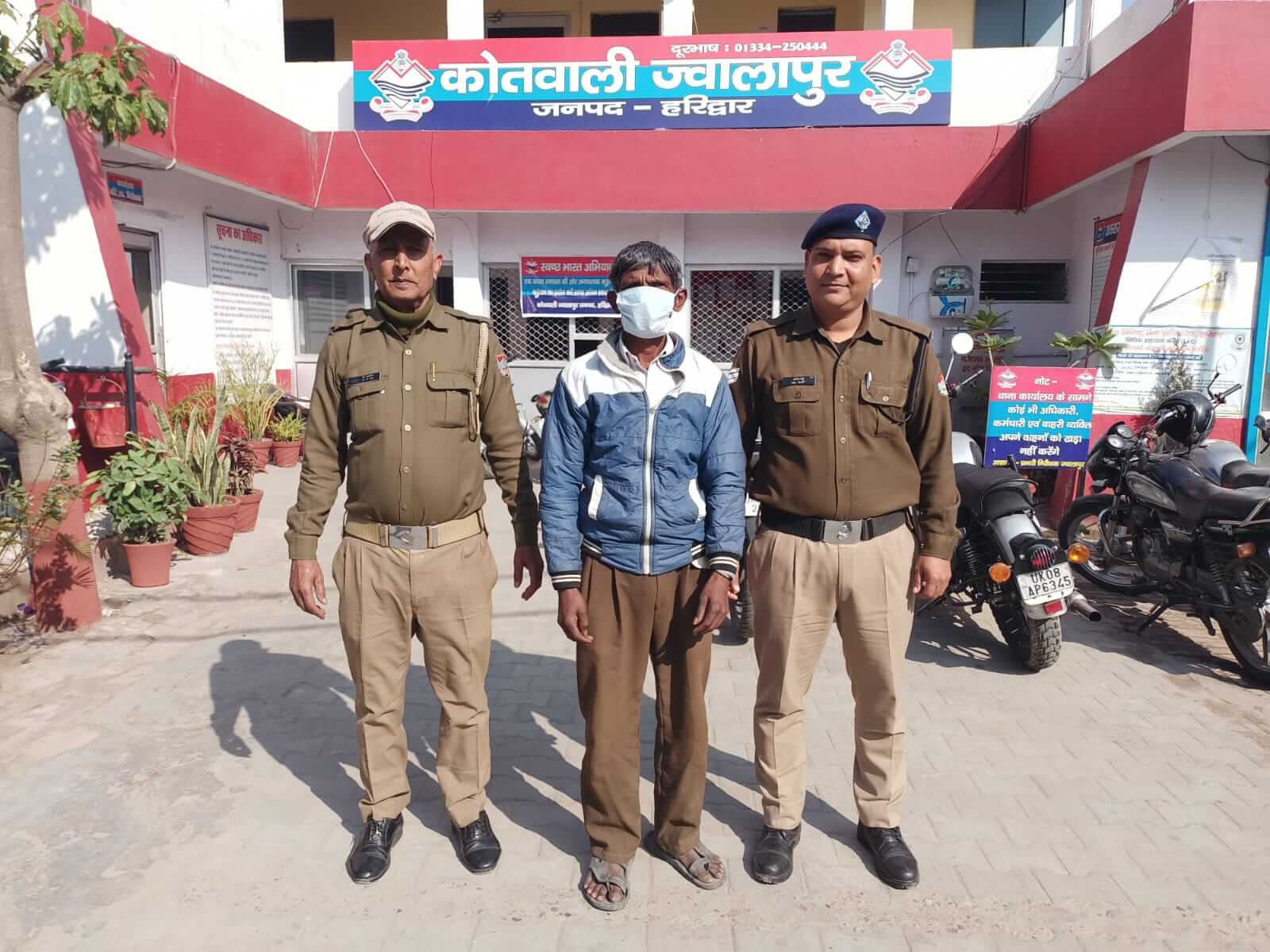 ज्वालापुर-हरिद्वार/श्रीनगर गढ़वाल। कोतवाली ज्वालापुर पुलिस ने जमीन की धोखाधड़ी के एक मामले में वर्ष 2025 से वांछित चल रहे अभियुक्त को गिरफ्तार किया है। अभियुक्त पर कूट रचित दस्तावेज तैयार कर भूमि को धोखाधड़ी से अपने नाम कराने का आरोप है। दिनांक 24 अक्टूबर 2025 को वादी नमन शर्मा निवासी संगमपुरी,साधु बेला,सप्त सरोवर रोड,कोतवाली हरिद्वार द्वारा दी गई तहरीर में बताया गया था कि विनोद पुत्र भरतू उर्फ रामगोपाल,देवेंद्र, रविकांत तथा एक महिला निवासी गाजीवाला,श्यामपुर जनपद हरिद्वार द्वारा आपराधिक षड्यंत्र रचकर वादी की भूमि के कूट रचित दस्तावेज तैयार किए गए और उन्हें असली रूप में दर्शाकर महिला अभियुक्त के नाम कर दिया गया। मामले के पंजीकरण के बाद से ही अभियुक्त फरार चल रहा था। वरिष्ठ पुलिस अधीक्षक के निर्देश पर वांछित अभियुक्तों की गिरफ्तारी के लिए चलाए जा रहे अभियान के तहत ज्वालापुर पुलिस ने दिनांक 4 फरवरी 2026 को कार्रवाई करते हुए वांछित अभियुक्त विनोद पुत्र भरतू उर्फ रामगोपाल निवासी कांगड़ी,गाजीवाला,थाना श्यामपुर,जनपद हरिद्वार को गाजीवाला श्यामपुर क्षेत्र से गिरफ्तार कर लिया। पुलिस द्वारा अन्य अभियुक्तों के संबंध में भी आवश्यक कार्रवाई की जा रही है। गिरफ्तार अभियुक्त विनोद पुत्र भरतू उर्फ रामगोपाल निवासी कांगड़ी गाजीवाला थाना श्यामपुर जनपद हरिद्वार, पुलिस टीम उप निरीक्षक रविंद्र जोशी,कांस्टेबल संदीप कुमार।