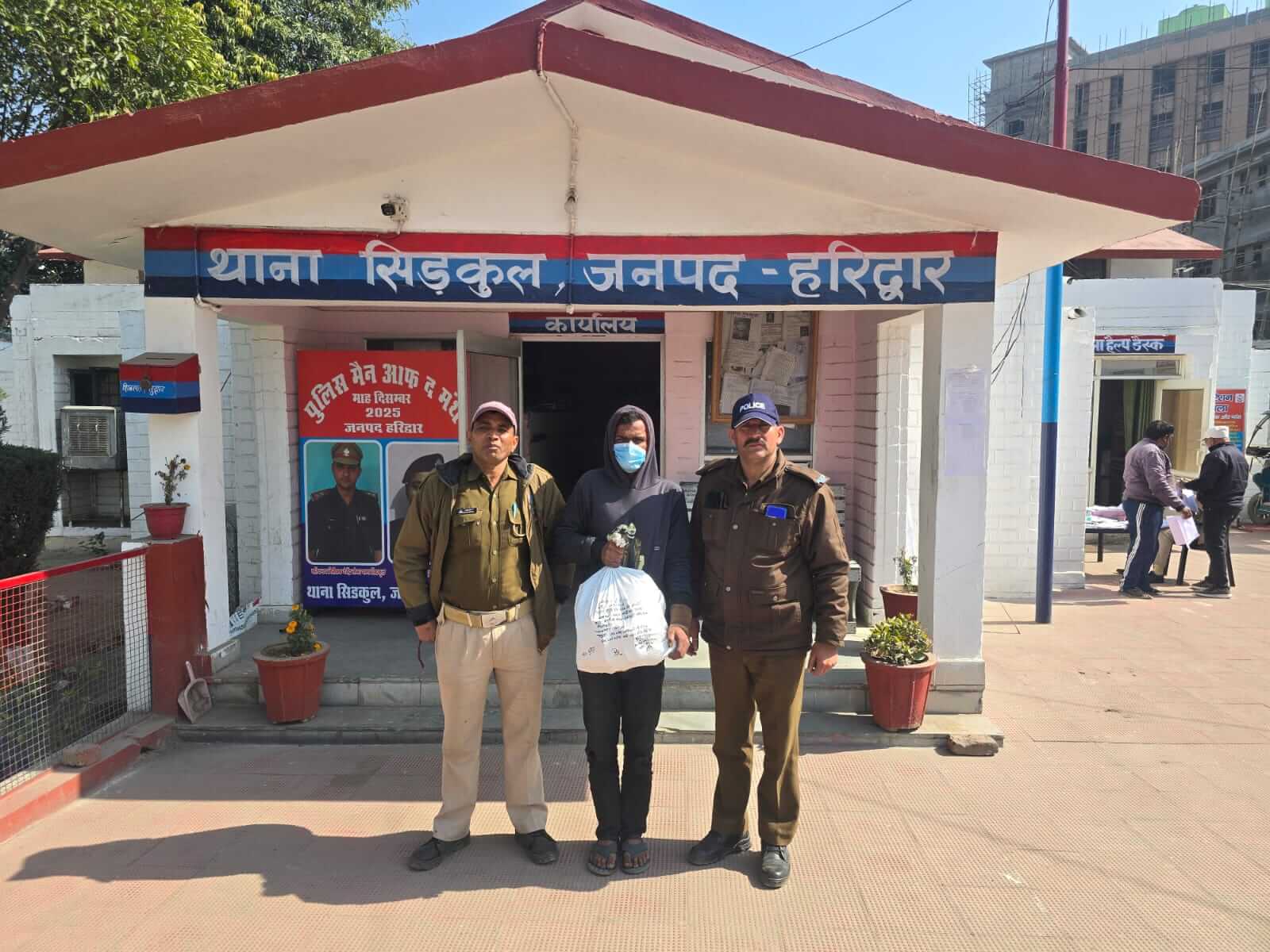 सिडकुल-हरिद्वार/श्रीनगर गढ़वाल। थाना सिडकुल क्षेत्र में नशे के खिलाफ चलाए जा रहे अभियान के तहत पुलिस को बड़ी सफलता मिली है। सिडकुल पुलिस ने 50 पैकेट देशी शराब के साथ एक नशा तस्कर को गिरफ्तार किया है। दिनांक 7 फरवरी 2026 को सिडकुल पुलिस द्वारा गश्त और चेकिंग के दौरान गणेश धर्म कांटा से रविदास मंदिर जाने वाली सड़क पर संदिग्ध व्यक्ति को रोका गया। तलाशी लेने पर उसके पास से 50 पैकेट देशी शराब माल्टा मार्का बरामद हुई। मौके पर ही आरोपी को हिरासत में ले लिया गया। गिरफ्तार किए गए आरोपी की पहचान राहुल पुत्र संजय सिंह के रूप में हुई है। आरोपी मूल रूप से चाव मंडी रुड़की का निवासी है और वर्तमान में रोशनपुरी रावली महदूद क्षेत्र में रह रहा था। पुलिस द्वारा आरोपी के खिलाफ आवश्यक वैधानिक कार्रवाई की जा रही है। पुलिस का कहना है कि क्षेत्र में अवैध शराब और नशा तस्करी के खिलाफ अभियान लगातार जारी रहेगा और ऐसे तत्वों के खिलाफ सख्त कार्रवाई की जाएगी। गिरफ्तार आरोपी का विवरण राहुल पुत्र संजय सिंह निवासी चाव मंडी रुड़की थाना गंगनहर हरिद्वार हाल निवासी अर्जुन का मकान रोशनपुरी रावली महदूद थाना सिडकुल उम्र 29 वर्ष,पुलिस टीम हेड कांस्टेबल संजय तोमर थाना सिडकुल,कांस्टेबल सुनील कुमार थाना सिडकुल।