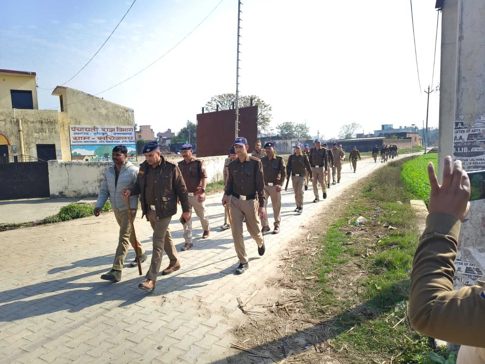 श्री श्याम पोर्टल-प्रदीप कुमार भगवानपुर-हरिद्वार/श्रीनगर गढ़वाल। कोतवाली भगवानपुर क्षेत्र के ग्राम बनारसी में कानून एवं शांति व्यवस्था को सुदृढ़ बनाए रखने के उद्देश्य से सोमवार 10 फरवरी 2026 को पुलिस द्वारा पीएसी के साथ संयुक्त रूप से फ्लैग मार्च निकाला गया। यह कार्रवाई 01 फरवरी 2026 को ग्राम बनारसी में दो पक्षों के बीच घटित प्रकरण के दृष्टिगत की गई। फ्लैग मार्च के दौरान पुलिस बल ने गांव के प्रमुख मार्गों पर पैदल भ्रमण कर आमजन से शांति एवं सौहार्द बनाए रखने की अपील की। पुलिस अधिकारियों ने ग्रामीणों को स्पष्ट संदेश दिया कि कानून व्यवस्था से किसी भी प्रकार का खिलवाड़ किसी भी सूरत में बर्दाश्त नहीं किया जाएगा। साथ ही लोगों से पुलिस प्रशासन को पूर्ण सहयोग देने और किसी भी अफवाह से दूर रहने का आग्रह किया गया। शांति व्यवस्था बनाए रखने के दृष्टिगत पुलिस द्वारा दोनों पक्षों के कुल 118 व्यक्तियों के विरुद्ध भारतीय नागरिक सुरक्षा संहिता की धारा 126 एवं 135 के अंतर्गत कार्रवाई की गई है। इस संबंध में आवश्यक रिपोर्ट उप जिला मजिस्ट्रेट भगवानपुर को प्रेषित कर दी गई है। पुलिस प्रशासन ने स्पष्ट किया कि क्षेत्र में लगातार निगरानी रखी जा रही है और किसी भी स्थिति से निपटने के लिए पुलिस पूरी तरह सतर्क है। शांति भंग करने का प्रयास करने वालों के विरुद्ध सख्त वैधानिक कार्रवाई अमल में लाई जाएगी।