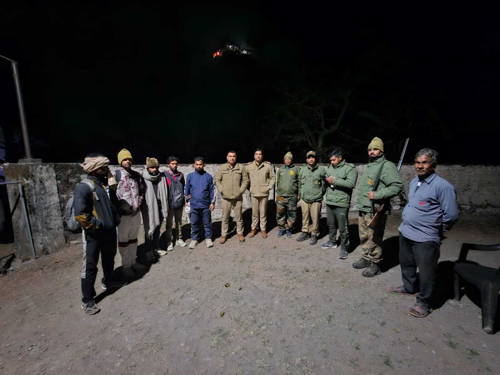 पौड़ी/श्रीनगर गढ़वाल। लक्ष्मणझूला क्षेत्र में नीलकंठ महादेव मंदिर से दर्शन कर लौट रहे पांच श्रद्धालु रास्ता भटककर घने जंगल में पहुंच गए। अंधेरी रात और दुर्गम वन क्षेत्र में फंसे श्रद्धालुओं को पुलिस और वन विभाग की संयुक्त टीम ने सर्च अभियान चलाकर सकुशल सुरक्षित स्थान तक पहुंचाया। 13 फरवरी 2026 की रात डायल 112 के माध्यम से सूचना मिली कि कुछ श्रद्धालु पैदल मुख्य मार्ग से भटककर जंगल में चले गए हैं और अपना सटीक स्थान नहीं बता पा रहे हैं। सूचना मिलते ही लक्ष्मणझूला पुलिस ने तत्काल कार्रवाई शुरू की। टीम ने कॉलर से लगातार संपर्क बनाए रखा और मोबाइल लोकेशन के आधार पर संभावित स्थान का आकलन किया। लोकेशन से स्पष्ट हुआ कि श्रद्धालु राजाजी नेशनल पार्क के अंतर्गत विंध्यवासिनी मंदिर के पास महादेव पानी क्षेत्र में फंसे हुए हैं। यह इलाका वन्यजीवों की दृष्टि से संवेदनशील और भौगोलिक रूप से जोखिमपूर्ण माना जाता है। परिस्थिति की गंभीरता को देखते हुए पुलिस ने वन विभाग से समन्वय स्थापित कर संयुक्त रेस्क्यू टीम गठित की। आवश्यक उपकरणों के साथ रात में ही जंगल में सर्च अभियान शुरू किया गया। घना जंगल पथरीले रास्ते और अंधकार के बीच टीम ने सतर्कता और साहस के साथ अभियान चलाया। संयुक्त प्रयासों से सभी श्रद्धालुओं को सुरक्षित खोजकर बाहर निकाला गया। रेस्क्यू के बाद श्रद्धालुओं ने पुलिस और वन विभाग की त्वरित कार्रवाई पर आभार जताया। रेस्क्यू किए गए श्रद्धालु चमन लाल पुत्र सुल्तान सिंह,कुलदीप पुत्र पवन कुमार,साहिल पुत्र महावीर,गोविंद पुत्र रणधीर,मनीष पुत्र सुल्तान,निवासी ग्राम जुरासी खालसा थाना सिमालखा जिला पानीपत हरियाणा,पुलिस टीम वरिष्ठ उपनिरीक्षक प्रकाश पोखरियाल,उपनिरीक्षक नवीन पुरोहित,होमगार्ड मोहित पीआरडी कुंवर प्रताप,वन विभाग टीम आरक्षी गौरव,आरक्षी हरि सिंह,आरक्षी केशव,बीट सहायक सुरेंद्र।