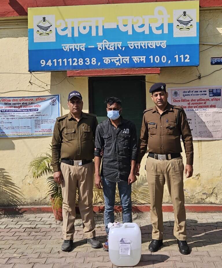 श्री श्याम पोर्टल-प्रदीप कुमार पथरी-हरिद्वार/श्रीनगर गढ़वाल। पथरी क्षेत्र में अवैध शराब के खिलाफ चलाए जा रहे अभियान के तहत हरिद्वार पुलिस ने एक तस्कर को गिरफ्तार किया है। जनपद को नशा मुक्त बनाने के उद्देश्य से संचालित अभियान के अंतर्गत यह कार्रवाई की गई। 15 फरवरी 2026 को पथरी पुलिस ने सुभाषगढ़ डेरा कलाल मार्ग स्थित ट्यूबवेल के पास से एक व्यक्ति को 10 लीटर अवैध कच्ची शराब के साथ पकड़ा। आरोपी के विरुद्ध आबकारी अधिनियम के तहत मुकदमा दर्ज कर विधिक कार्रवाई शुरू कर दी गई है। गिरफ्तार आरोपी की पहचान अंकित कुमार पुत्र चतर सैन निवासी ग्राम अलावलपुर थाना पथरी जिला हरिद्वार के रूप में हुई है। कार्रवाई करने वाली पुलिस टीम में कांस्टेबल राकेश नेगी और कांस्टेबल नारायण सिंह शामिल रहे।