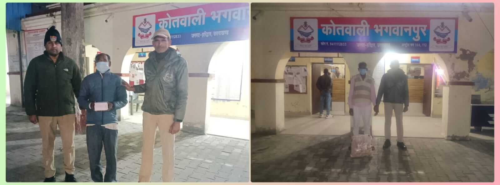 भगवानपुर-हरिद्वार/श्रीनगर गढ़वाल। नशा मुक्त देवभूमि मिशन को सफल बनाने के लिए हरिद्वार पुलिस की ओर से अवैध शराब के निर्माण और तस्करी के खिलाफ लगातार अभियान चलाया जा रहा है। इसी क्रम में भगवानपुर पुलिस टीम ने 15 फरवरी 2026 को अलग-अलग स्थानों पर कार्रवाई करते हुए दो आरोपियों को गिरफ्तार किया। पहली कार्रवाई में खेलड़ी से निवादा जाने वाली सड़क पर श्मशान घाट के पास से बाबूराम पुत्र बिशम्बर निवासी ग्राम सिकरोड़ा थाना भगवानपुर जनपद हरिद्वार को 52 पव्वे देशी शराब के साथ पकड़ा गया। दूसरी कार्रवाई में आरोग्यम अस्पताल करौंदी सर्विस रोड ग्राम करौंदी से शीतल पुत्र जय सिंह निवासी ग्राम किशनपुर जमालपुर थाना भगवानपुर जनपद हरिद्वार को 48 पव्वे देशी शराब के साथ गिरफ्तार किया गया। दोनों आरोपियों के कब्जे से कुल 100 पव्वे देशी शराब बरामद हुई। पुलिस द्वारा दोनों के विरुद्ध आवश्यक कानूनी कार्रवाई की जा रही है। कार्रवाई करने वाली पुलिस टीम में राहुल कुमार अजय चंदेल अमर सिंह नेगी और संजय कुमार शामिल रहे।