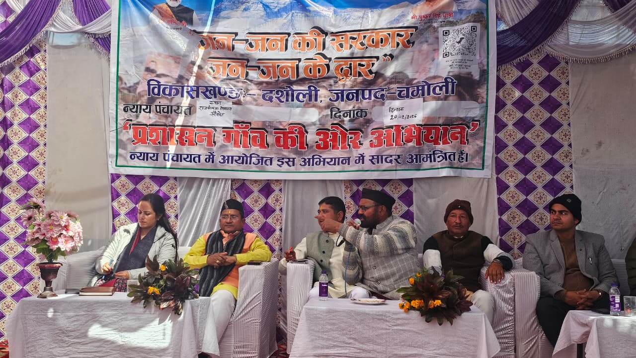चमोली/श्रीनगर गढ़वाल। मुख्यमंत्री पुष्कर सिंह धामी की पहल पर न्याय पंचायत स्तर पर आयोजित जन जन की सरकार जन जन के द्वार अभियान के अंतर्गत दशोली विकासखंड के सैकोट गांव में बहुउद्देशीय शिविर आयोजित किया गया। शिविर की अध्यक्षता तहसीलदार चमोली सुधा डोभाल ने की। शिविर में 25 विभागों द्वारा स्टॉल लगाकर ग्रामीणों को विभिन्न जनकल्याणकारी योजनाओं की जानकारी दी गई। सैकोट में आयोजित शिविर में 275 ग्रामीणों ने प्रतिभाग किया। विभागीय स्टॉलों के माध्यम से 190 ग्रामीणों को विभिन्न सेवाओं से लाभान्वित किया गया। शिविर में ग्रामीणों द्वारा 41 शिकायतें दर्ज कराई गईं जिनमें से 26 शिकायतों का मौके पर ही निस्तारण किया गया। शेष शिकायतों को संबंधित अधिकारियों को अग्रसारित कर दिया गया। समाज कल्याण राजस्व स्वास्थ्य सहित विभिन्न विभागों द्वारा 28 ग्रामीणों को अलग-अलग प्रमाण पत्र भी जारी किए गए। जनपद चमोली में इस अभियान के तहत विभिन्न न्याय पंचायतों में कुल 42 बहुउद्देशीय शिविर आयोजित किए गए। इन शिविरों में 14 हजार 128 ग्रामीणों ने प्रतिभाग किया। सभी शिविरों में कुल 3 हजार 256 शिकायतें दर्ज की गईं जिनमें से 2 हजार 393 शिकायतों का मौके पर समाधान किया गया। स्वास्थ्य समाज कल्याण राजस्व कृषि नागरिक आपूर्ति पेयजल विद्युत पशुपालन आयुर्वेदिक होम्योपैथिक ग्रामोत्थान तथा बाल विकास सहित 25 विभागों द्वारा लगाए गए स्टॉलों के माध्यम से 4 हजार 556 ग्रामीणों को योजनाओं का लाभ दिया गया। साथ ही विभिन्न विभागों द्वारा 1802 प्रमाण पत्र भी निर्गत किए गए।