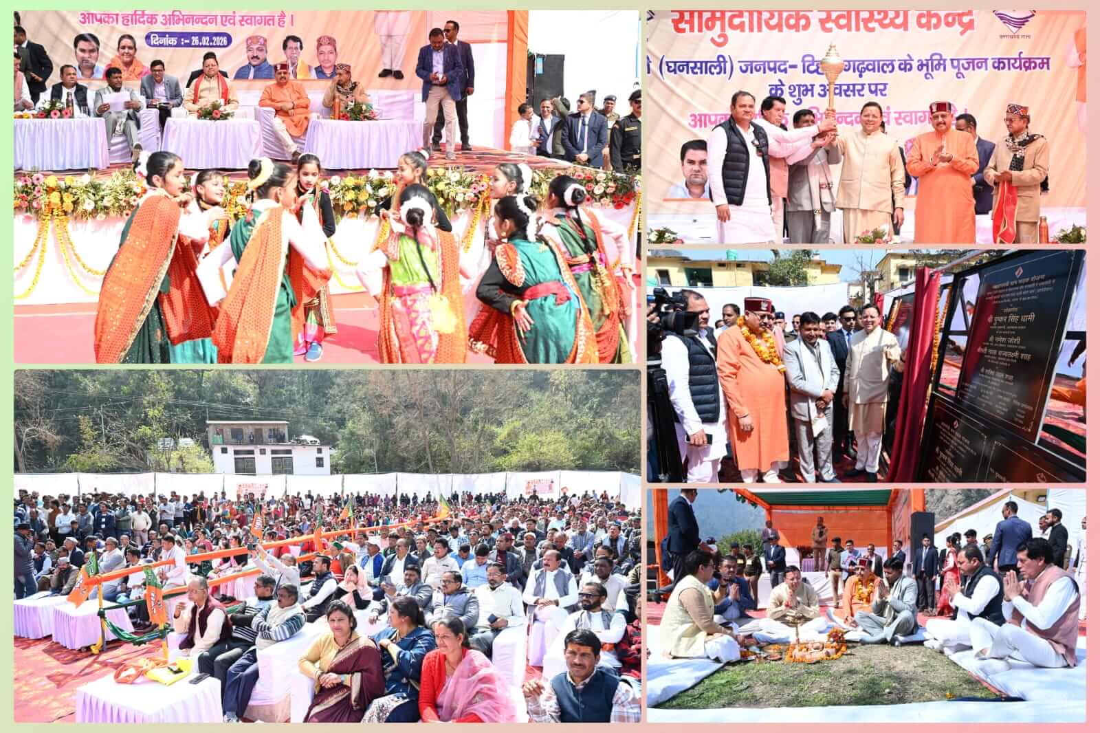 टिहरी/श्रीनगर गढ़वाल। मुख्यमंत्री पुष्कर सिंह धामी ने गुरुवार को जनपद टिहरी के घनसाली क्षेत्र में 4121.10 लाख रुपये की विभिन्न विकास योजनाओं का लोकार्पण और शिलान्यास किया। इस दौरान प्राथमिक स्वास्थ्य केंद्र पिलखी के सामुदायिक स्वास्थ्य केंद्र में उच्चीकरण के लिए भूमि पूजन भी किया गया। कार्यक्रम में मुख्यमंत्री को हनुमान गदा भेंट कर सम्मानित किया गया। अस्पताल हेतु भूमि दान करने वाले कृष्णा गैरोला और उनके परिवार को भी सम्मानित किया गया। विद्यालयों के छात्र–छात्राओं ने सांस्कृतिक कार्यक्रम और बैंड प्रस्तुति से वातावरण को उत्साहपूर्ण बनाया। मुख्यमंत्री ने कहा कि जिन योजनाओं का शिलान्यास किया गया है उनका कार्य रुकना नहीं चाहिए और उनका शीघ्र लोकार्पण सुनिश्चित किया जाएगा। उन्होंने कहा कि सरकार पहाड़ी क्षेत्रों में सड़क स्वास्थ्य और शिक्षा जैसी मूलभूत सुविधाओं को प्राथमिकता दे रही है। मजबूत इच्छाशक्ति से संसाधनों की कमी को भी दूर किया जा सकता है। उन्होंने कहा कि आयुष्मान भारत योजना के माध्यम से प्रत्येक परिवार को प्रतिवर्ष पांच लाख रुपये तक निःशुल्क उपचार की सुविधा मिल रही है। प्रत्यक्ष लाभ अंतरण व्यवस्था से योजनाओं का लाभ सीधे लाभार्थियों तक पारदर्शिता के साथ पहुंच रहा है।नंदा गौरा योजना के अंतर्गत बेटियों को 51 हजार रुपये की सहायता दी जा रही है। प्रदेश में आधुनिक स्वास्थ्य सुविधाओं का विस्तार किया जा रहा है और क्षेत्र में स्वास्थ्य सेवाओं को सुदृढ़ किया जाएगा। मुख्यमंत्री ने स्वर्गीय इंद्राणी बंडोनी को श्रद्धांजलि अर्पित करते हुए कहा कि क्षेत्र की प्रमुख मांगों पर प्राथमिकता से कार्य किया जाएगा। उन्होंने बताया कि हजारों युवाओं को रोजगार उपलब्ध कराया गया है तथा अतिक्रमण हटाकर भूमि मुक्त कराई गई है। पिलखी और बालेश्वर क्षेत्र में उप चिकित्सालय स्थापित करने की घोषणा भी की गई। होली के अवसर पर शुभकामनाएं देते हुए उन्होंने कहा कि प्राप्त 37 सूत्रीय ज्ञापन को आगामी घोषणाओं में शामिल किया जाएगा। विधायक घनसाली शक्तिलाल शाह ने मुख्यमंत्री का स्वागत करते हुए घनसाली में 30 बेड अस्पताल तीनगढ़ पुनर्वास बालगंगा पुल के लिए धनराशि स्वीकृति विद्यालय भवन निर्माण और बिजलीघर शिलान्यास सहित विभिन्न विकास कार्यों के लिए आभार व्यक्त किया। उन्होंने अखोड़ी उच्चीकरण थाती भटवाड़ा में बाढ़ सुरक्षा कार्य धमातोली हाईस्कूल का इंटर कॉलेज में उच्चीकरण ब्लॉक मुख्यालय में मिनी स्टेडियम कोठार–सौड़ सड़क निर्माण तथा गेंवली बुद्धकेदार और पिंडवाड़ में उप स्वास्थ्य केंद्र स्थापना सहित 37 सूत्रीय मांगें भी रखीं।मुख्यमंत्री द्वारा कुल 4121.10 लाख रुपये की तीन योजनाओं का लोकार्पण 