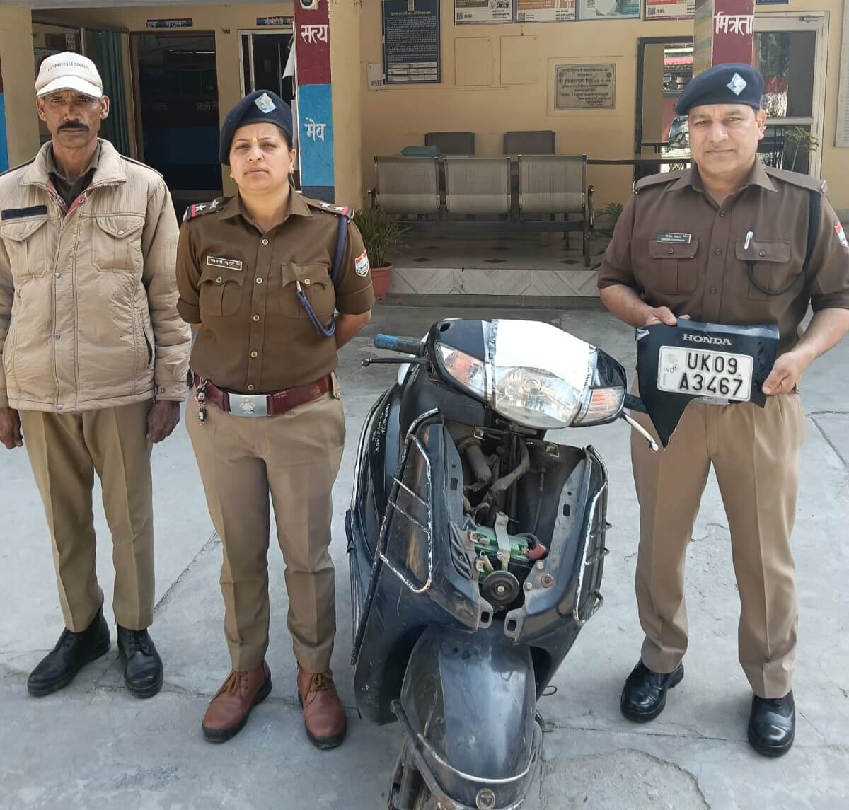 श्रीनगर गढ़वाल। कोतवाली श्रीनगर क्षेत्र में घर के बाहर से चोरी हुई स्कूटी का पुलिस ने खुलासा करते हुए वाहन बरामद कर लिया है।मामले में 14 वर्षीय विधि विवादित किशोर को संरक्षण में लेकर आवश्यक वैधानिक कार्रवाई की जा रही है। 01 मार्च 2026 को प्रतिभा राणा निवासी नंदा देवी मंदिर गुरुद्वारा रोड ने कोतवाली श्रीनगर में लिखित शिकायत दी कि उनकी स्कूटी संख्या UK-09-A-3467 को 27 फरवरी 2026 को घर के बाहर से अज्ञात व्यक्ति द्वारा चोरी कर लिया गया। शिकायत के आधार पर कोतवाली श्रीनगर में मुकदमा दर्ज कर जांच उप निरीक्षक भावना भट्ट को सौंपी गई। वाहन चोरी की घटनाओं के खुलासे और रोकथाम को लेकर वरिष्ठ पुलिस अधीक्षक सर्वेश पंवार के निर्देशन में पुलिस टीम ने सक्रियता बढ़ाई। क्षेत्र में सीसीटीवी कैमरों की जांच डिजिटल और मैनुअल पुलिसिंग के माध्यम से सुराग जुटाए गए।01 मार्च 2026 को चेकिंग के दौरान एक संदिग्ध किशोर काले रंग की बिना नंबर प्लेट की एक्टिवा चलाते हुए पुलिस को देखकर भागने का प्रयास करने लगा। शक होने पर उसे रोककर पूछताछ की गई। पूछताछ में उसने स्वीकार किया कि 27 फरवरी को गुरुद्वारा रोड से उक्त स्कूटी चोरी की थी और पकड़े जाने के डर से नंबर प्लेट निकालकर डिग्गी में छिपा दी थी। उसने यह भी बताया कि वह मौज-मस्ती के लिए सड़क किनारे खड़े वाहनों को चोरी कर कुछ दिन चलाकर छोड़ देता है।पुलिस ने स्कूटी और संबंधित नंबर प्लेट बरामद कर ली है।विधि विवादित किशोर को संरक्षण में लेकर अग्रिम कार्रवाई की जा रही है। बरामद माल होंडा एक्टिवा स्कूटी (इंजन नंबर JF50E70434647) एक सफेद नंबर प्लेट-UK09A-3467-पुलिस टीम प्रभारी निरीक्षक कुलदीप सिंह महिला उप निरीक्षक भावना भट्ट हेड कांस्टेबल संजय कंडारी कांस्टेबल दिनेश चौहान।