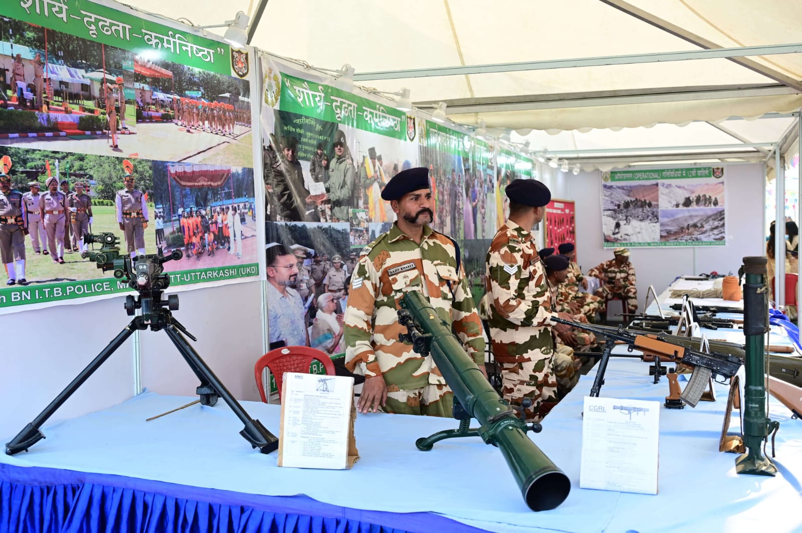 प्रदर्शनी में हथियारों के साथ-साथ पर्वतारोहण के दौरान उपयोग में आने वाले उपकरणों को भी प्रदर्शित किया गया है। आईटीबीपी से जुड़े राजीव खरे और अन्य जवान इन उपकरणों के उपयोग के बारे में लोगों को विस्तार से जानकारी दे रहे हैं। विशेष रूप से हिमस्खलन (एवलांच) के दौरान इस्तेमाल होने वाले उपकरणों के बारे में जानने में लोगों की विशेष रुचि देखी जा रही है। धराली आपदा की झलक भी प्रदर्शनी में शामिल