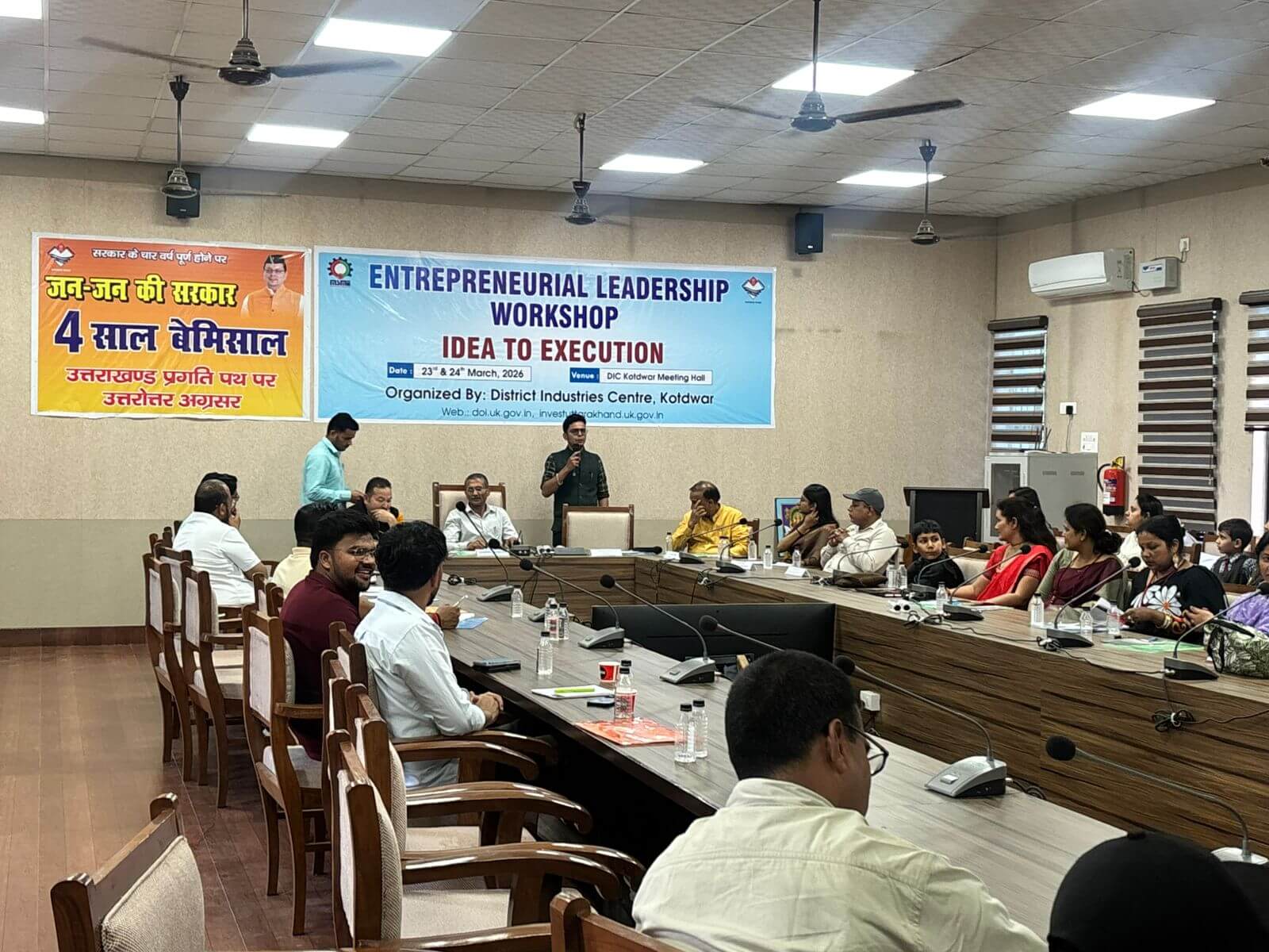पौड़ी/श्रीनगर गढ़वाल। जिला उद्योग केंद्र के तत्वावधान में दो दिवसीय उद्यमिता नेतृत्व कार्यशाला का सफल आयोजन किया गया। जन-जन की सरकार 4 साल बेमिसाल कार्यक्रम के अंतर्गत आयोजित इस कार्यशाला ने युवाओं एवं भावी उद्यमियों को नयी ऊर्जा स्पष्ट दिशा एवं व्यावसायिक समझ प्रदान की। कार्यशाला के दौरान प्रतिभागियों को परियोजना प्रारम्भ प्रोजेक्ट इनिशिएशन एवं प्रतिस्पर्धी विश्लेषण कम्पेटिटिव इंटेलिजेंस के माध्यम से व्यवसाय की मजबूत नींव रखने के बारे में विस्तार से जानकारी दी गई। विशेषज्ञों द्वारा सिडकुल भूमि आवंटन सीडा मैप स्वीकृति की तकनीकी प्रक्रियाएं वित्तीय प्रबंधन एवं जीएसटी जैसे महत्वपूर्ण विषयों पर सरल एवं व्यावहारिक मार्गदर्शन दिया गया। इसके साथ ही डिजिटल मार्केटिंग वित्तीय साक्षरता तथा उत्तराखंड सरकार की स्वरोजगार एवं उद्योग विभाग की विभिन्न कल्याणकारी योजनाओं की जानकारी भी प्रतिभागियों को दी गयी जिससे वे सरकारी सहायता का अधिकतम लाभ उठा सकें। कार्यशाला के दूसरे दिन विभिन्न विभागों के अधिकारियों एवं विशेषज्ञों द्वारा महत्वपूर्ण सत्र आयोजित किए गए। प्रथम सत्र में जिला उद्योग केंद्र की योजनाओं का विस्तृत प्रस्तुतीकरण किया गया। इसके पश्चात अग्निशमन विभाग द्वारा औद्योगिक सुरक्षा एवं अग्नि सुरक्षा फायर प्रिवेंशन से संबंधित महत्वपूर्ण बिंदुओं पर मार्गदर्शन दिया गया। डिजिटल मार्केटिंग विषय पर विशेषज्ञों ने आधुनिक विपणन के प्रभावी तरीकों से प्रतिभागियों को अवगत कराया। द्वितीय सत्र में उद्यान विभाग द्वारा उद्यानिकी से संबंधित योजनाओं की जानकारी दी गयी। इसके बाद सफल उद्यमियों ने अपने अनुभव एवं सफलता की कहानियां साझा कीं जिससे प्रतिभागियों में आत्मविश्वास का संचार हुआ और उन्हें स्वरोजगार की दिशा में आगे बढ़ने की प्रेरणा मिली। पीआईडीपी योजना से संबंधित सफल उदाहरण भी प्रस्तुत किए गए। कार्यक्रम के अंत में संवाद सत्र आयोजित किया गया जिसमें प्रतिभागियों ने अपने प्रश्न रखे और विशेषज्ञों द्वारा उनका समाधान किया गया। समापन सत्र में प्रतिभागियों को सहभागिता प्रमाण पत्र प्रदान किए गए तथा बैम्बू क्राफ्ट प्रशिक्षण से जुड़े प्रतिभागियों को भी प्रमाण पत्र वितरित किए गए। यह कार्यशाला स्थानीय युवाओं को आत्मनिर्भर बनाने की दिशा में एक महत्वपूर्ण पहल सिद्ध हुई है। कोटद्वार अब स्थानीय प्रतिभाओं को नयी पहचान दिलाने और आत्मनिर्भर उत्तराखंड के संकल्प को साकार करने की दिशा में तेजी से अग्रसर है। कार्यक्रम में प्रबंधक आर.पी.आर्य उपासना सिंह विवेक चौहान सचिव सिडकुल औद्योगिक निर्माता संघ सुनील गुप्ता अध्यक्ष सिडकुल औद्योगिक निर्माता संघ सुनील कुमा
