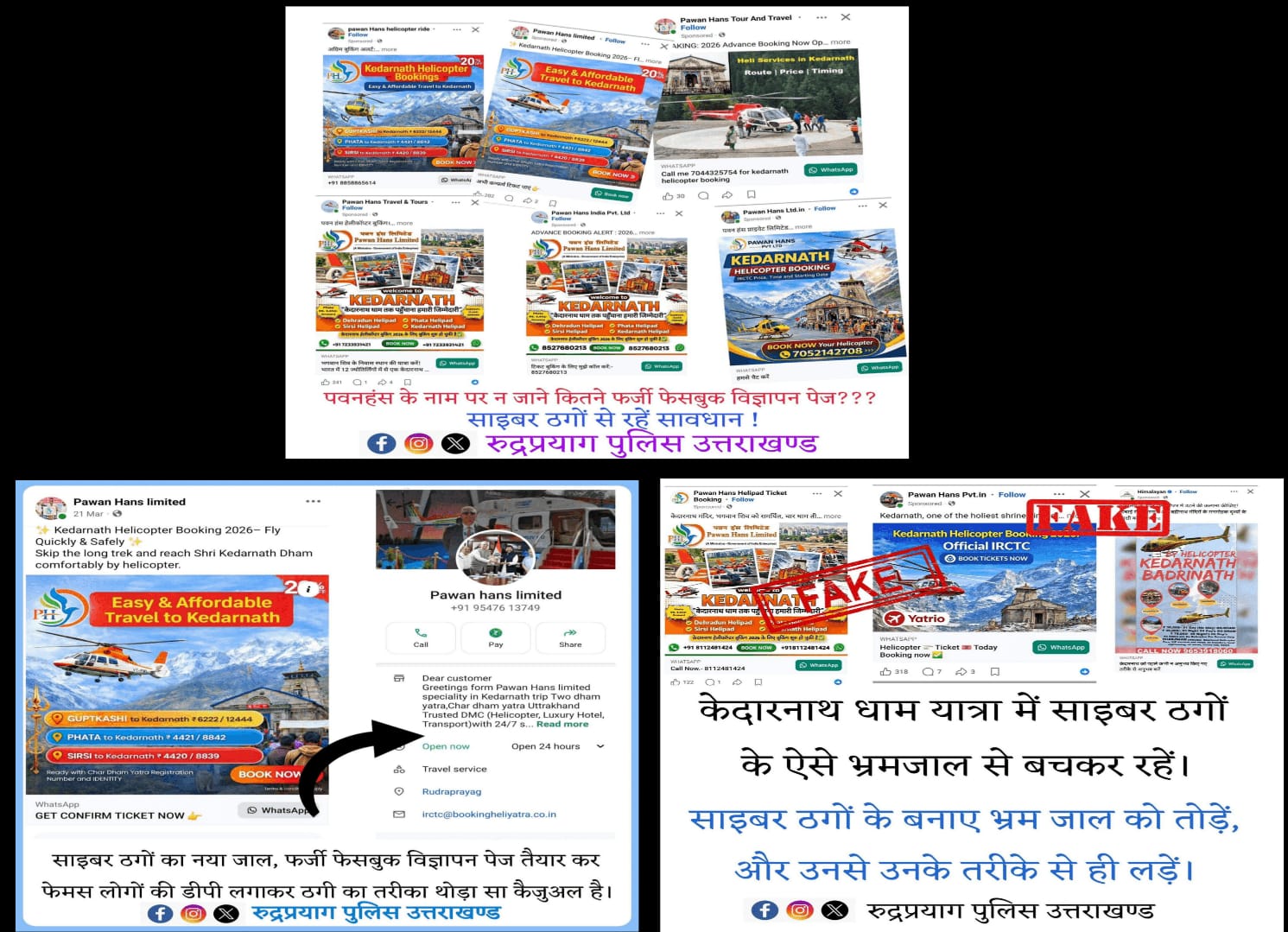 रूद्रप्रयाग/श्रीनगर गढ़वाल। आगामी श्री केदारनाथ धाम यात्रा 2026 के दृष्टिगत श्रद्धालुओं को साइबर ठगी से सतर्क रहने हेतु महत्वपूर्ण एडवाइजरी जारी की गई है।चारधाम यात्रा के दौरान हेलीकॉप्टर बुकिंग के नाम पर साइबर अपराधियों द्वारा फर्जी वेबसाइट सोशल मीडिया विज्ञापन एवं व्हाट्सएप मैसेज के माध्यम से लोगों को ठगने के प्रयास लगातार सामने आ रहे हैं। जानकारी के अनुसार ठग फेसबुक एवं इंस्टाग्राम जैसे प्लेटफॉर्म पर प्रायोजित (Sponsored) पोस्ट के जरिए आकर्षक विज्ञापन दिखाकर लोगों को भ्रमित करते हैं। इसके अतिरिक्त गूगल सर्च में सबसे ऊपर दिखाई देने वाले Sponsored लिंक भी कई बार फर्जी हो सकते हैं जिनके माध्यम से यूजर्स को नकली वेबसाइटों पर ले जाकर उनसे भुगतान कराया जाता है। साइबर अपराधी व्हाट्सएप कॉल या चैट के माध्यम से हेलीकॉप्टर टिकट बुकिंग का दावा करते हुए सीधे पैसे की मांग करते हैं तथा क्यूआर कोड स्कैन कराने का दबाव बनाते हैं। जबकि कोई भी अधिकृत कंपनी इस प्रकार की प्रक्रिया का पालन नहीं करती है। इसके साथ ही Pawan Hans या Himalayan जैसे नामों से मिलती-जुलती फर्जी वेबसाइट बनाकर भी लोगों को ठगने के मामले सामने आए हैं। श्रद्धालुओं को सलाह दी गई है कि हेलीकॉप्टर टिकट की बुकिंग केवल आधिकारिक पोर्टल https://heliyatra.irctc.co.in के माध्यम से ही करें। किसी अन्य वेबसाइट या लिंक पर विश्वास न करें। वेबसाइट का यूआरएल सावधानीपूर्वक जांचें क्योंकि ठग असली वेबसाइट से मिलती-जुलती स्पेलिंग का उपयोग करते हैं। इसके अलावा यदि कोई व्यक्ति फोन कॉल के माध्यम से VIP कोटा या लास्ट मिनट बुकिंग का लालच देता है तो उसे तुरंत नजरअंदाज करें तथा ऐसे नंबरों को ब्लॉक करें। यदि किसी श्रद्धालु के साथ साइबर धोखाधड़ी की घटना होती है तो तत्काल साइबर हेल्पलाइन नंबर 1930 पर संपर्क करें अथवा www.cybercrime.gov.in पर ऑनलाइन शिकायत दर्ज करें। प्रशासन ने अपील की है कि श्रद्धालु सतर्कता एवं सावधानी बरतें किसी भी प्रकार की जल्दबाजी से बचें और इस महत्वपूर्ण जानकारी को अधिक से अधिक लोगों तक साझा करें ताकि साइबर ठगों के मंसूबों को विफल किया जा सके।