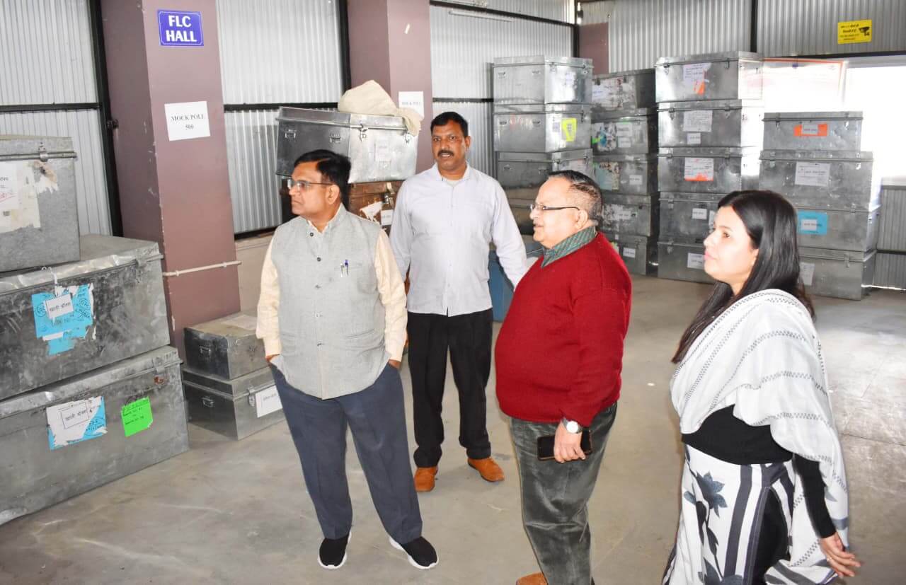 चमोली/श्रीनगर गढ़वाल। अपर जिलाधिकारी विवेक प्रकाश ने सोमवार को राजनीतिक दलों के पदाधिकारियों की मौजूदगी में ईवीएम वेयर हाउस का मासिक निरीक्षण किया। निरीक्षण के दौरान ईवीएम व वीवीपैट मशीनें डबल लॉक में सुरक्षित पाई गई।इस दौरान अपर जिलाधिकारी ने वेयर हाउस में विद्युत व्यवस्था सीसीटीवी कंट्रोल रूम साफ सफाई और सुरक्षा व्यवस्था का जायजा भी लिया। निरीक्षण के दौरान नायब तहसीलदार चमोली सुश्री दीपशिखा निर्वाचन विभाग से डीसी सती कांग्रेस पार्टी के मदन लोहानी आम आदमी पार्टी के अनूप सिंह एवं निर्वाचन कार्यालय के कार्मिक मौजूद थे।