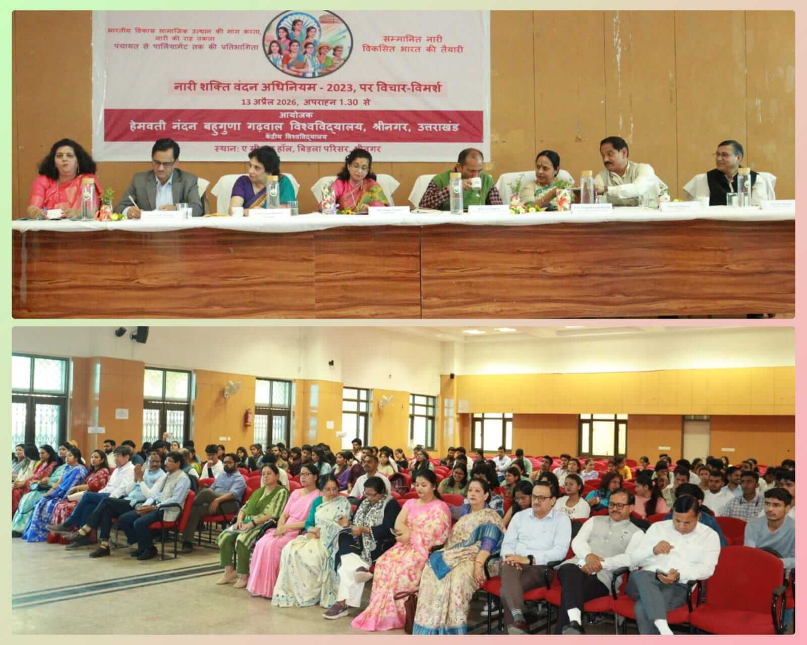 श्रीनगर गढ़वाल। हेमवती नंदन बहुगुणा गढ़वाल विश्वविद्यालय श्रीनगर द्वारा आज बिरला परिसर के एसीएल हॉल में नारी शक्ति वंदन अधिनियम 2023 पर एक महत्वपूर्ण अकादमिक विचार-विमर्श का आयोजन किया गया। इस कार्यक्रम में बड़ी संख्या में छात्र-छात्राओं शोधार्थियों एवं शिक्षकों ने भाग लिया और महिलाओं के राजनीतिक प्रतिनिधित्व से जुड़े मुद्दों पर गंभीर चर्चा की। कार्यक्रम की शुरुआत वंदे मातरम् से हुई जिसके पश्चात दीप प्रज्वलन कर कार्यक्रम का औपचारिक उद्घाटन किया गया। उद्घाटन सत्र की मुख्य अतिथि नूपुर वर्मा एसडीएम श्रीनगर रहीं। कार्यक्रम की संयोजक प्रो.सीमा धवन ने स्वागत भाषण देते हुए कार्यक्रम के उद्देश्यों पर प्रकाश डाला और कहा कि इस प्रकार के अकादमिक मंच छात्रों को समकालीन संवैधानिक मुद्दों पर विचार करने का अवसर प्रदान करते हैं। अपने संबोधन में मुख्य अतिथि नूपुर वर्मा ने कहा कि सरकार द्वारा महिलाओं के शैक्षिक आर्थिक एवं कानूनी सशक्तिकरण के लिए अनेक प्रयास किए जा रहे हैं और नारी शक्ति वंदन अधिनियम 2023 के माध्यम से महिलाओं के राजनीतिक सशक्तिकरण को भी सुनिश्चित किया गया है जो एक सराहनीय कदम है। उन्होंने यह भी कहा कि महिलाओं को मानसिक एवं मनोवैज्ञानिक रूप से भी सशक्त होना आवश्यक है ताकि वे अपने अधिकारों के लिए सशक्त रूप से खड़ी हो सकें। कार्यक्रम को संबोधित करते हुए प्रो.एन.एस.पंवार कार्यवाहक कुलपति ने इस संवैधानिक परिवर्तन को ऐतिहासिक बताया। उन्होंने कहा कि भारतीय समाज में सदैव मजबूत महिला नेतृत्व रहा है लेकिन विधायिकाओं में उनकी भागीदारी अभी भी कम है। यह अधिनियम न केवल उनकी संख्या बढ़ाएगा बल्कि नेतृत्व को भी सुदृढ़ करेगा। प्रो.एम.एस.पंवार ने पर्वतीय क्षेत्रों की महिलाओं की समस्याओं पर प्रकाश डालते हुए कहा कि इन क्षेत्रों की महिलाएं विशेष चुनौतियों का सामना करती हैं। यह अधिनियम उन्हें अपने मुद्दों को उठाने का एक महत्वपूर्ण मंच प्रदान करेगा। राजनीति विज्ञान विभाग के प्रो.एम.एम.सेमवाल ने अधिनियम के प्रमुख प्रावधानों पर प्रकाश डालते हुए इसे भारतीय लोकतंत्र को सशक्त करने की दिशा में एक ऐतिहासिक कदम बताया और इसके शीघ्र क्रियान्वयन की आवश्यकता पर बल दिया। उन्होंने कहा कि महिलाओं का कम प्रतिनिधित्व एक गंभीर चिंता का विषय है और यह सुधार सामाजिक सोच में भी परिवर्तन लाएगा। अतिथि वक्ता प्रो.मंजू प्रकाश गुसाईं ने अपने विचार रखते हुए कहा कि जब समाज में असंतुलन होता है तब ऐसे विधेयकों की आवश्यकता होती है। यह अधिनियम समावेशिता और महिला सशक्तिकरण की दिशा में एक ऐतिहासिक पहल है। कार्यक्रम में डॉ.अमरजीत सिंह परिहार ने कुलपति का संदेश पढ़ा जिसमें कहा गया कि महिलाओं की बढ़ती भा
