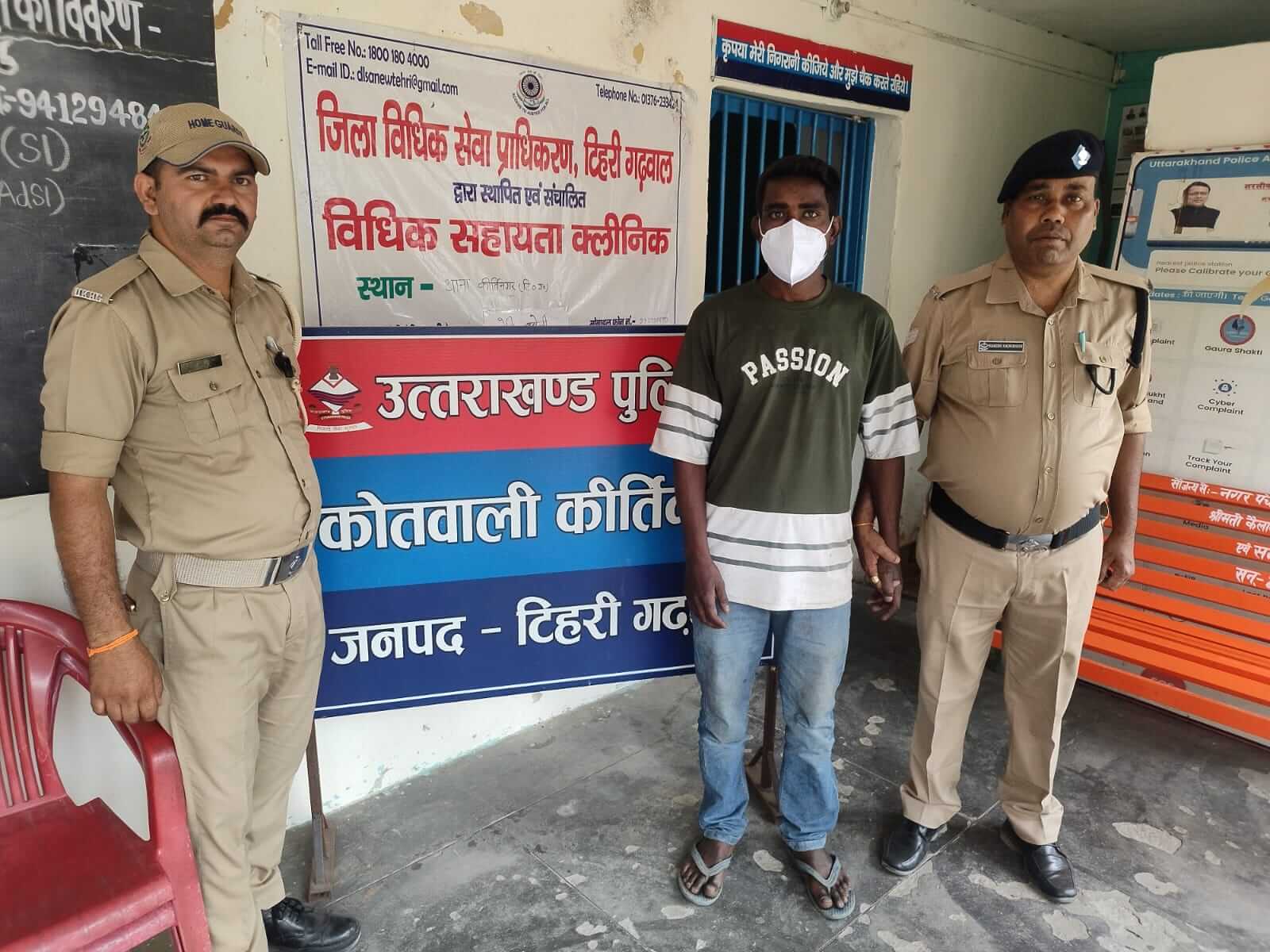 कीर्तिनगर-टिहरी/श्रीनगर गढ़वाल। जनपद में कानून व्यवस्था बनाए रखने के लिए पुलिस द्वारा लगातार सतर्कता बरती जा रही है। इसी क्रम में थाना कीर्तिनगर पुलिस ने त्वरित कार्रवाई करते हुए एक ऐसे अभियुक्त को गिरफ्तार किया, जो पहले हत्या के मामले में जेल जा चुका है और वर्तमान में जमानत पर था। 20 अप्रैल 2026 को डायल 112 के माध्यम से सूचना मिली कि डंगवाल गधेरा रोड चौरास क्षेत्र में एक व्यक्ति शराब के नशे में गाली-गलौज करते हुए हंगामा कर रहा है और स्थानीय लोगों को धमका रहा है। सूचना मिलते ही पुलिस टीम तुरंत मौके पर पहुंची। मौके पर मोहित बिष्ट उर्फ राहुल निवासी मढ़ी चौरास थाना कीर्तिनगर शराब के नशे में स्थानीय लोगों के साथ अभद्र व्यवहार करते हुए पाया गया। पूछताछ में सामने आया कि वह पूर्व में हत्या के मामले में जेल जा चुका है और जमानत पर बाहर है। वह अपने आपराधिक इतिहास का भय दिखाकर लोगों को डराने-धमकाने का प्रयास करता रहता है। स्थानीय लोगों ने बताया कि अभियुक्त अक्सर नशे में गाली-गलौज और हंगामा करता है जिससे क्षेत्र में भय का माहौल बना रहता है। पुलिस ने उसे समझाने का प्रयास किया लेकिन उसके आक्रामक व्यवहार को देखते हुए शांति भंग की आशंका पर उसे हिरासत में ले लिया गया। पुलिस की त्वरित कार्रवाई से संभावित गंभीर घटना टल गई। अभियुक्त के खिलाफ संबंधित धाराओं में कार्रवाई करते हुए उसे न्यायालय में पेश किया गया है। जनपद पुलिस ने स्पष्ट किया है कि कानून व्यवस्था से खिलवाड़ करने लोगों को डराने-धमकाने या शांति भंग करने वालों के खिलाफ सख्त कार्रवाई जारी रहेगी। इस कार्रवाई में उपनिरीक्षक आशीष रावत हेड कांस्टेबल प्रदीप और कांस्टेबल हरीश चंद्र शामिल रहे।