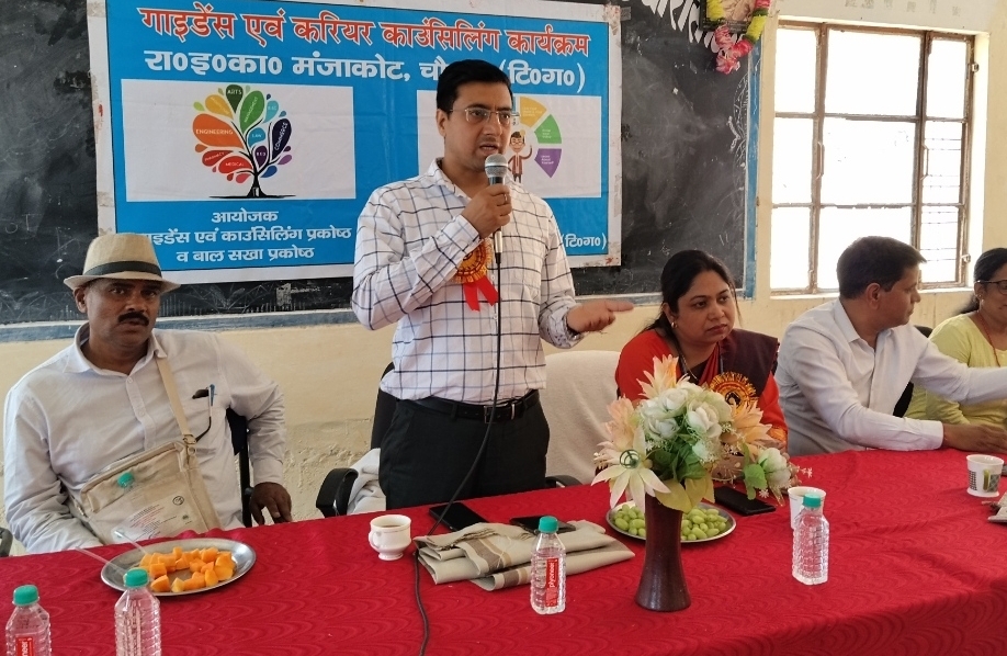 श्रीनगर गढ़वाल।शहीद राजेंद्र सिंह रावत राइंका मंजाकोट में गाइडेंस एवं कॅरिअर काउंसलिंग कार्यक्रम का आयोजन किया गया। इस मौके पर बतौर मुख्य वक्ता एसडीएम कीर्तिनगर मंजू राजपूत व नायब तहसीलदार डाॅ.प्रदीप कंडारी ने छात्रों को बेहतर भविष्य बनाने के लिए टिप्स दिए व विभिन्न क्षेत्रों में रोजगार व सफलता के सूत्र बताए।एसडीएम मंजू राजपूत ने विद्यार्थियों के सरल शब्दों में सिविल सर्विसेज के बारे में जानकारियां दी। उन्होंने कहा कि सबसे पहले छात्रों को अपनी बुनियाद मजबूत कर लक्ष्य का निर्धारण करना चाहिए। उन्होंने कहा कि सिविल सर्विसेज में भविष्य बनाने के लिए कड़ी मेहनत की आवश्यकता है। उन्होंने इसके लिए समय प्रबंधन आत्मविश्वास व सीखने की आदत डालने की आवश्यकता पर जोर दिया। नायब तहसीलदार कीर्तिनगर डाॅ.प्रदीप कंडारी ने छात्रों को कॅरिअर निर्माण के विकल्पों के बारे में जानकारी दी। उन्होंने इंजीनियरिंग मेडिकल सिविल सेवा बैंकिंग मैनेजमेंट मीडिया डिफेंस आदि क्षेत्रों में बेहतर भविष्य बनाने के लिए छात्रों को प्रेरित किया व उन्हें इन क्षेत्रों में जाने के लिए जरूरी जानकारियां भी दी। उन्होंने छात्रों को पढ़ाई के साथ-साथ कौशल विकास (स्किल डेवलपमेंट) पर ध्यान देने केलिए जागरूक किया। मौके पर सामाजिक कार्यकर्ता देवेंद्र गौड़ ने भी छात्रों को खेलों के महत्व के बारे में बताया व इस क्षेत्र में भविष्य निर्माण की जानकारियां दी। प्रधानाचार्य प्रमोद तिवाड़ी ने विद्यालय के गाइडेंस एवं कॅरियर काउंसलिंग प्रकोष्ठ तथा बाल प्रकोष्ठ की ओर से आयोजित इस कार्यक्रम में आए अतिथियों का स्वागत कर उनका आभार व्यक्त किया। मौके पर शिक्षक योगेश बहुगुणा डाॅ.अशोक बडोनी मनीष चमोली आदि मौजूद रहे।