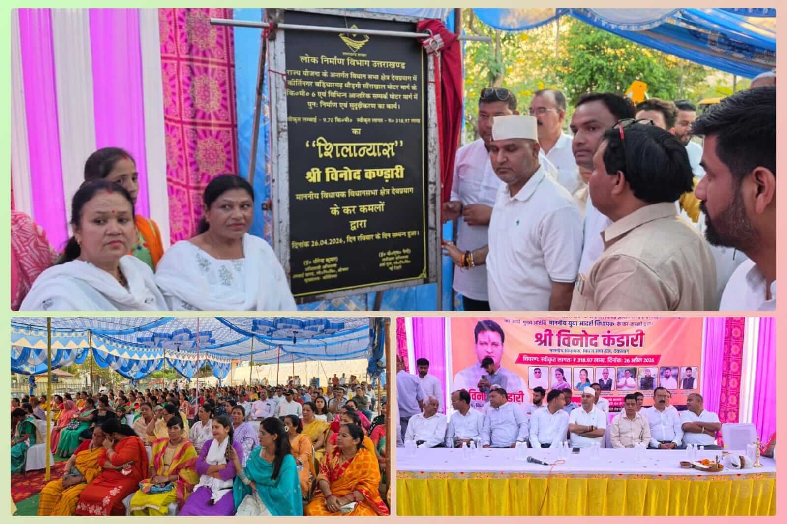 कीर्तिनगर-श्रीनगर गढ़वाल। कीर्तिनगर क्षेत्र में लोक निर्माण विभाग के तहत राज्य योजना के अंतर्गत चारश के आंतरिक मोटर मार्ग के पुनर्निर्माण और सुदृढ़ीकरण कार्य की शुरुआत देवप्रयाग विधानसभा के विधायक विनोद कंडारी द्वारा की गई। करीब 318.97 लाख रुपये की लागत से बनने वाला यह मार्ग कुल 9.70 किलोमीटर लंबा है जिससे क्षेत्र की यातायात व्यवस्था को मजबूत और सुगम बनाया जाएगा। इस महत्वपूर्ण कार्य के पूरा होने के बाद क्षेत्रवासियों को बेहतर सड़क सुविधा मिलेगी जिससे आवागमन में आसानी होगी और स्थानीय लोगों के साथ-साथ विद्यार्थियों किसानों एवं व्यापारियों को भी सीधा लाभ मिलेगा। सड़क के सुदृढ़ीकरण से क्षेत्र में विकास की गति तेज होने की उम्मीद जताई जा रही है। कार्यक्रम के दौरान क्षेत्र में पेयजल आपूर्ति को बेहतर बनाने में सहयोग के लिए क्षेत्रवासियों की ओर से समाजसेवी राम दयाल चौहान के माध्यम से देवप्रयाग विधानसभा के विधायक विनोद कंडारी को चांदी का मुकुट भेंट कर सम्मानित किया गया। इस दौरान जनप्रतिनिधियों और स्थानीय लोगों ने क्षेत्र के विकास कार्यों पर संतोष व्यक्त किया। इस अवसर पर क्षेत्र पंचायत सदस्य सोनू बहुगुणा मनोज जोशी सुमन नौटियाल अंजलि चौहान नवीन कठैत प्रधान धर्म भंडारी वासु भट्ट मनीष डंगवाल ज्येष्ठ प्रमुख जगत रतूड़ी कुलदीप चौहान सैलेश मलाशी प्रधान सपना देवी आकाश रौतारी नरेंद्र कुंवर अनीता सिलवाल किरण सिलवाल सरिता पुंडीर सहित अन्य जनप्रतिनिधि और गणमान्य लोग मौजूद रहे।