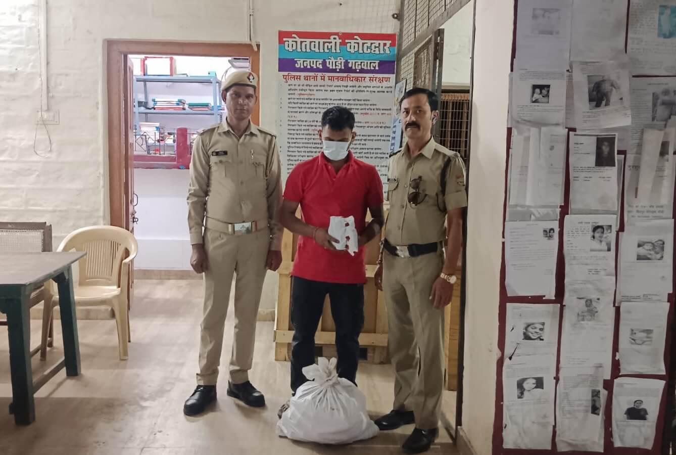 कोटद्वार-पौड़ी/श्रीनगर गढ़वाल। वरिष्ठ पुलिस अधीक्षक पौड़ी के निर्देशन में जनपद में नशा तस्करी पर अंकुश लगाने के लिए पुलिस द्वारा लगातार सघन चेकिंग अभियान चलाया जा रहा है। इसी क्रम में कोतवाली कोटद्वार पुलिस ने दैनिक चेकिंग के दौरान कार्रवाई करते हुए सिंबलचौड़ क्षेत्र से एक व्यक्ति को 60 पव्वे अंग्रेजी शराब के साथ गिरफ्तार किया। आरोपी के खिलाफ आबकारी अधिनियम के तहत मामला दर्ज कर आवश्यक कानूनी कार्रवाई की जा रही है। गिरफ्तार आरोपी गौरव पाल निवासी सिंबलचौड़ कोटद्वार पौड़ी पुलिस टीम हेड कांस्टेबल शशि कांत त्यागी कांस्टेबल आशीष बिष्ट