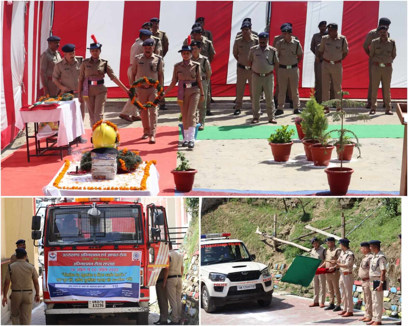 पौड़ी/श्रीनगर गढ़वाल।आज दिनांक 14 अप्रैल 2025 को अग्निशमन सेवा सप्ताह शुभारम्भ के अवसर पर वरिष्ठ पुलिस अधीक्षक पौड़ी लोकेश्वर सिंह के निर्दशन में अपर पुलिस अधीक्षक संचार अनूप काला द्वारा पुलिस लाईन पौड़ी में अग्निशमन सेवा सप्ताह का शुभारम्भ कर फायर सर्विस के वाहनों, कार्मिकों की रैली को प्रचार-प्रसार हेतु हरी झड़ी दिखाकर रवाना किया गया। इससे पूर्व आगजनी की घटनाओं में अपने कर्तव्यों का पालन करते हुए अपने प्राणों की आहुति देकर शहीद होने वाले दिवंगत फायर सर्विस कार्मिकों को याद करते हुए अपर पुलिस अधीक्षक महोदय,अग्निशमन अधिकारी पौड़ी सहित फायर सर्विस के कार्मिकों एवं अन्य समस्त कार्मिकों द्वारा पुष्पाजंलि अर्पित कर श्रद्धांजलि दी गयी व शहीद जवानों की याद में 2 मिनट का मौन धारण किया गया।इस अवसर पर अपर पुलिस अधीक्षक संचार श्री अनूप काला द्वारा 14 अप्रैल को मनाये जाने वाले अग्निशमन सेवा सप्ताह के बारे में सभी कार्मिकों बताते हुए इस वर्ष 14-20 अप्रैल तक अग्निशमन सप्ताह के दौरान आगजनी की घटनाओं की रोकथाम एवं बचाव के सम्बन्ध में फायर सर्विस कार्मिकों को व्यासायिक/औद्योगिक संस्थानों,फैक्ट्रियों,होटलों,अस्पतालों एवं स्कूलों आदि में जाकर आमजन को जागरूक करने व जनपद के सम्बन्धित ग्राम प्रधानों से समन्वय स्थापित कर ग्रामीण क्षेत्रों में चौपाल लगाकर ग्रामीणों को वनाग्नि की घटनाओं की रोकथाम हेतु जागरूक करने हेतु निर्देशित किया गया तथा किसी भी प्रकार की आगजनी की घटना/आग लगने की सूचना प्राप्त होते ही अविलम्ब मय फायर उपकरणों के घटना स्थल पर पहुँचकर आवश्यक कार्यवाही किये जाने हेतु निर्देशित किया गया जिससे बड़े हादसे होने से टल जाएं और किसी भी प्रकार की जान-माल की हानि होने से बचा जा सके।