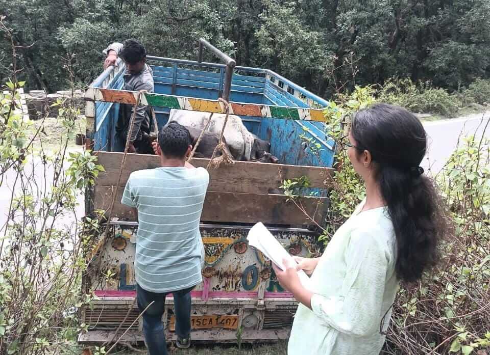 रेस्क्यू किए गए निराश्रित गौवंशों को गौसदन जखोला भेजा गया