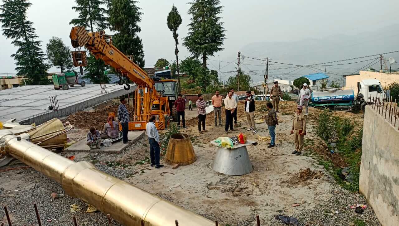 पौड़ी/श्रीनगर गढ़वाल।पौड़ी नगर के मध्य स्थित निर्माणाधीन ट्राइडेंट पार्क शीघ्र ही एक भव्य स्वरूप ग्रहण करने जा रहा है। रविवार 21अप्रैल(आज) को पार्क परिसर में 11.5 टन वजनी पीतल से निर्मित त्रिशूल की स्थापना की जाएगी,जिससे यह स्थल नगरवासियों,सैलानियों के लिए एक नया दर्शनीय केंद्र बनेगा। जिलाधिकारी डॉ.आशीष चौहान ने शनिवार देर शाम स्थलीय निरीक्षण कर पार्क निर्माण कार्य की प्रगति का जायजा लिया।उन्होंने लोक निर्माण विभाग के अधिकारियों को निर्देशित किया कि पार्क का निर्माण कार्य निर्धारित समयसीमा में गुणवत्ता के साथ पूर्ण किया जाए। उन्होंने त्रिशूल की संतुलन व्यवस्था (बैलेंसिंग) और फिनिशिंग पर विशेष ध्यान देने को कहा।निरीक्षण के दौरान अधिशासी अभियंता लोनिवि पाबौ कलम सिंह नेगी ने बताया कि त्रिशूल के मैटेलिक फेब्रिकेशन का कार्य पूर्ण कर लिया गया है और उसे बेस से जोड़ने हेतु हैवी क्रेन निर्माण स्थल पर पहुंच चुकी है। नियोजित कार्यक्रमानुसार,रविवार 21 अप्रैल को त्रिशूल के मेटल भाग को सफलतापूर्वक बेस से जोड़ दिया गया।जिलाधिकारी ने निर्देश दिए कि त्रिशूल स्थापना के उपरांत फ्लोरिंग तथा विला एक्सटीरियर स्टाइल रेलिंग का कार्य तेजी से पूर्ण किया जाए। उन्होंने यह भी कहा कि पार्क की दीवारों को भित्तिचित्रों (म्यूरल्स) से सजाया जाएगा,जिससे यह स्थान न केवल आध्यात्मिक,बल्कि सांस्कृतिक दृष्टि से भी समृद्ध हो सके। निरीक्षण के दौरान संयुक्त मजिस्ट्रेट दीपक रामचंद्र शेठ,तहसीलदार दीवान सिंह राणा,कानूनगो,राजस्व निरीक्षक एवं निर्माणदायी एजेंसी के विशेषज्ञ उपस्थित थे।
