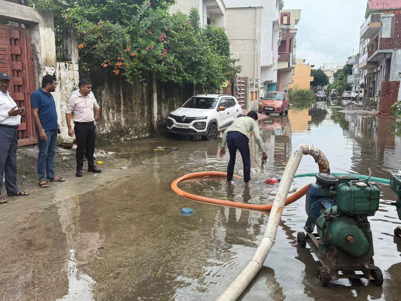 जिलाधिकारी के निर्देशन में जलभराव क्षेत्रों में जल निकासी का कार्य तत्परता से कर रहे अधिकारी
