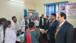 पौड़ी/श्रीनगर गढ़वाल।पृथ्वी दिवस के अवसर पर जिला न्यायालय परिसर,पौड़ी में जिला विधिक सेवा प्राधिकरण,पौड़ी गढ़वाल द्वारा विधिक साक्षरता एवं जागरूकता शिविर का आयोजन किया गया। कार्यक्रम का शुभारंभ जनपद न्यायाधीश/अध्यक्ष,जिला विधिक सेवा प्राधिकरण अजय चौधरी द्वारा दीप प्रज्ज्वलित कर किया गया।सिविल जज (सी.डि.)/सचिव,जिला विधिक सेवा प्राधिकरण अकरम अली ने जानकारी दी कि स्वास्थ्य विभाग एवं हंस फाउंडेशन के सहयोग से स्वास्थ्य परीक्षण शिविर आयोजित किया गया,जिसमें न्यायालय परिसर में उपस्थित समस्त कर्मियों एवं आगंतुकों का स्वास्थ्य परीक्षण किया गया। शिविर में कुल 94 बीपी/सूगर परीक्षण,45 ओरल स्क्रीनिंग,100 ईएनटी परीक्षण एवं 113 रक्त जांच की गई।