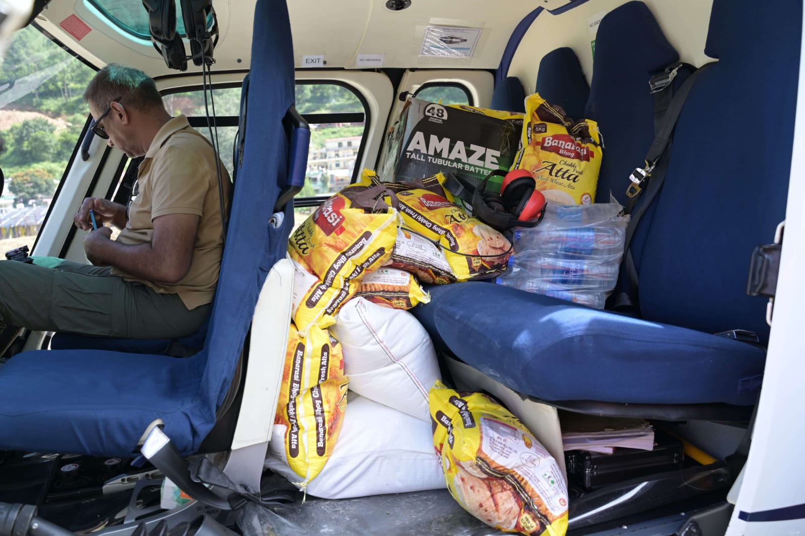 जिलाधिकारी ने दिए आवश्यक दिशा-निर्देश उच्छोला में हेलीकॉप्टर से पहुंचाई जा रही राहत सामग्री