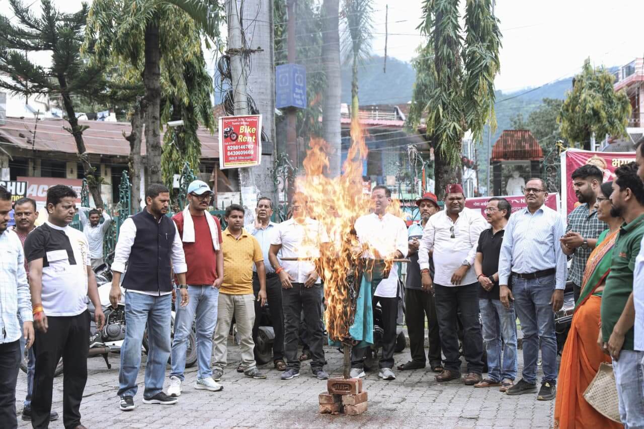 श्रीनगर में भाजपा कार्यकर्ताओं ने प्रधानमंत्री की माता पर आपत्तिजनक टिप्पणी के विरोध में कांग्रेस-राजद का पुतला दहन किया