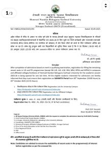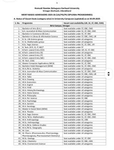 एचएनबी गढ़वाल विश्वविद्यालय व संबद्ध कॉलेजों में मेरिट आधार पर रिक्त सीटों पर प्रवेश प्रक्रिया शुरू