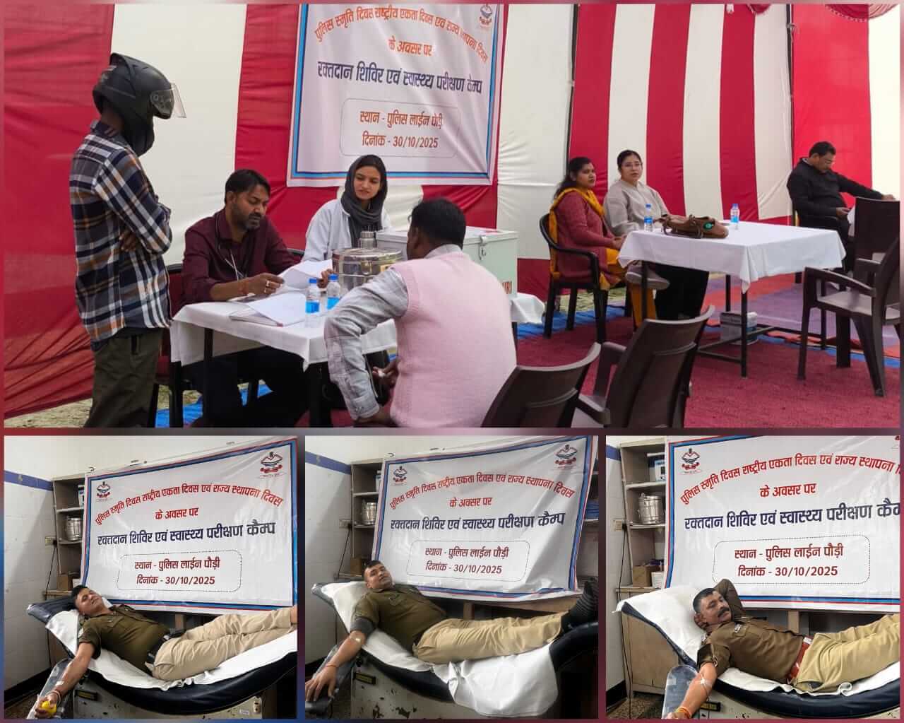 राष्ट्रीय एकता और राज्य स्थापना दिवस पर पौड़ी पुलिस ने आयोजित किया विशेष रक्तदान एवं स्वास्थ्य परीक्षण शिविर