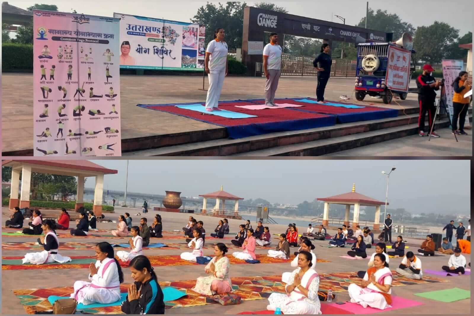 हरिद्वार/श्रीनगर गढ़वाल।हरिद्वार 2 नवंबर को उत्तराखंड राज्य स्थापना दिवस के 25 वर्ष पूर्ण होने के उपलक्ष में रजत जयंती उत्सव कार्यक्रम में आज नमामि गंगे घाट चंडीघाट पर आयुष एवं आयुष शिक्षा विभाग उत्तराखंड के द्वारा आयुर्वेदिक यूनानी और होम्योपैथी विभाग के संयुक्त तत्वधान में योग अभ्यास किया गया जिसमें मुख्य अतिथि स्वामी अनंतानंद महाराज एवं विशिष्ट अतिथि योगी रजनीश जी अध्यक्ष ओम आरोग्यम योग मंदिर हरिद्वार संयुक्त रूप से किया गया।जिला आयुर्वेदिक एवं यूनानी अधिकारी डॉक्टर स्वास्तिक जैन ने अवगत कराया है कि राज्य स्थापना दिवस के उपलक्ष में जनपद में आयोजित होने वाले कार्यक्रम की श्रृंखला जिलाधिकारी मयूर दीक्षित के र्निदेश में आज से शुभारंभ किया गया। जिसके तहत आज नमामि गंगे घाट पर योगाभ्यास सत्र का आयोजन किया गया है जिसमें 200 प्रतिभागियों ने प्रतिभाग कर योगाभ्यास किया।उन्होंने अवगत कराया है कि आयुष्मान आरोग्य मंदिरों में प्रतिदिन योग अनुदेशकों के द्वारा योग सत्र का आयोजन किया रहा है जिससे कि ग्रामीण परिवेश में लोग बहुत ज्यादा लाभान्वित हो रहे हैं डॉ भास्कर,डॉ.अश्विनी, डॉ.विकास दुबे,डॉ.सुष्मिता,डॉ.नावेद,डॉ.विकास जैन,डॉ .प्रदीप,डॉ.दीक्षा,नागेश्वर उनियाल,प्रकाश उनियाल,राजेंद्र मिश्र,नवीन,दीपिका अंजना धनौला शेफाली विनय विनीत मुनीराम विक्रम ने कार्यक्रम में सहयोग किया राष्ट्रीय सेविका समिति की की तरुणी प्रमुख प्राची गुप्ता के द्वारा अपने सदस्यों के साथ योगाभ्यास में प्रतिभाग किया।योग कार्यक्रम में साधना सिंह निदेशक संयोग रिजूवनेशन देहरादून के द्वारा एक योग नृत्य भी प्रस्तुत किया गया।योगाभ्यास कु.अदिति,प्रतिभा,निशा भट्ट एवं निकुंज उपाध्याय के द्वारा कराया गया।इस अवसर पर डॉ.भास्कर,डॉ.अश्विनी,डॉ.विकास दुबे,डॉ.सुष्मिता,डॉ.नावेद,डॉ.विकास जैन,डॉ.प्रदीप,डॉ.दीक्षा,नागेश्वर उनियाल,प्रकाश उनियाल,राजेंद्र मिश्र,नवीन,दीपिका,अंजना धनौला,शेफाली,विनय,विनीत,मुनीराम,विक्रम आदि ने योगाभ्यास में प्रतिभाग किया।योगाभ्यास कार्यक्रम में प्रतिभाग करने वाले प्रतिभागों का जिला आयुर्वेदिक एवं यूनानी अधिकारी डॉक्टर स्वास्तिक जैन धन्यवाद ज्ञापित किया।